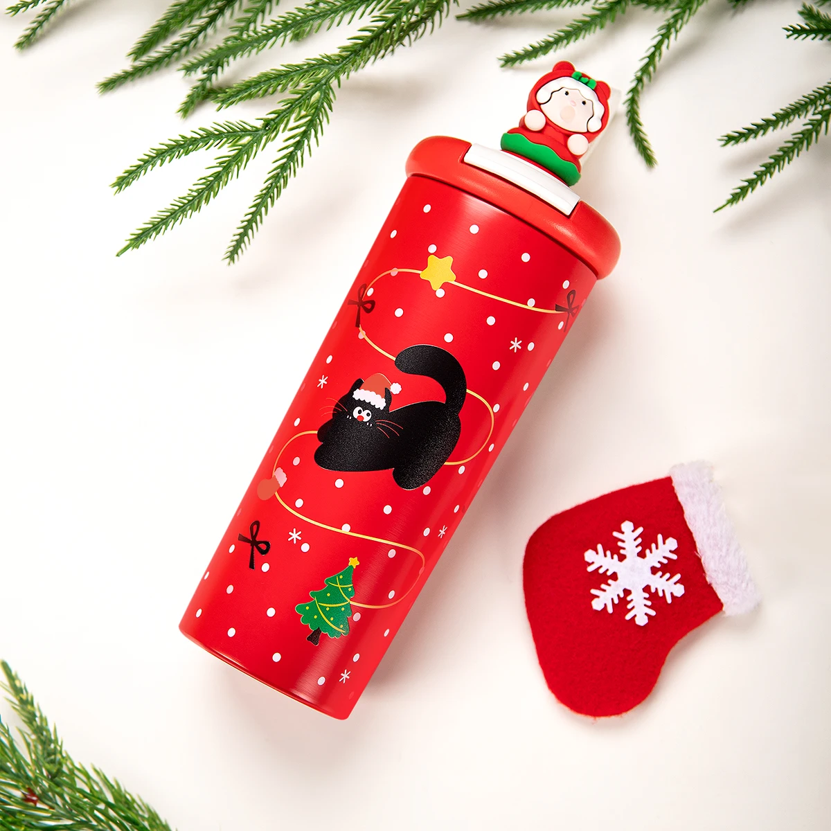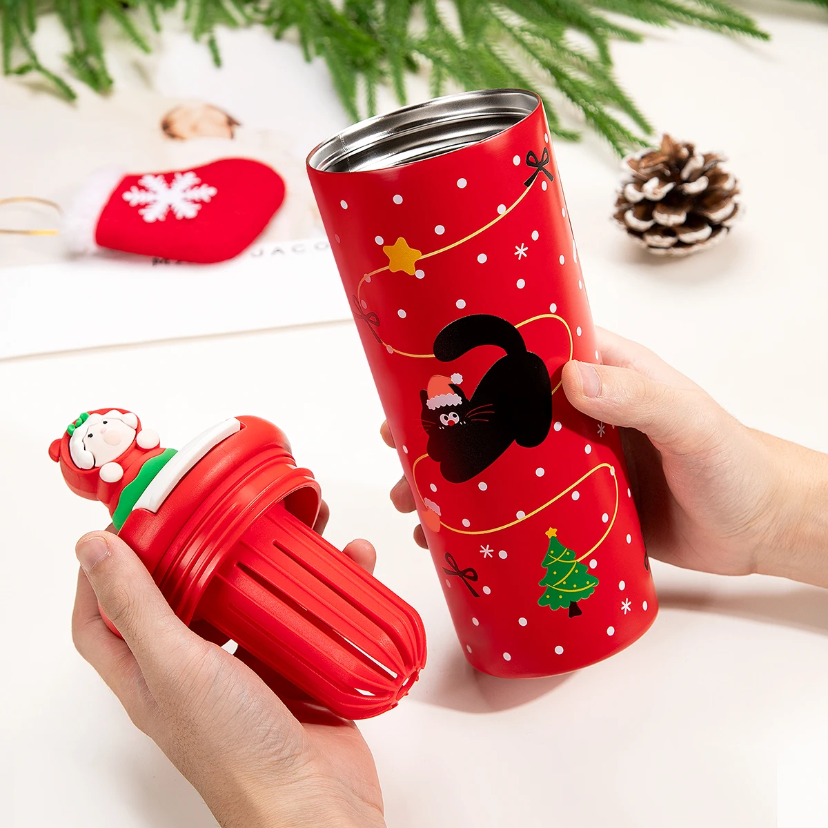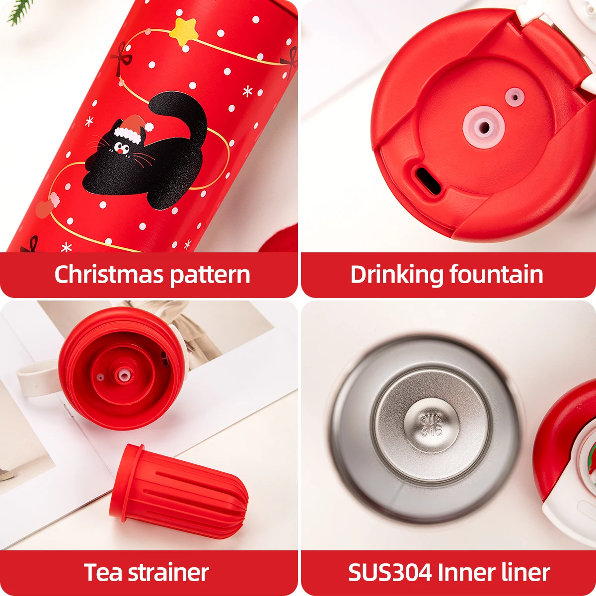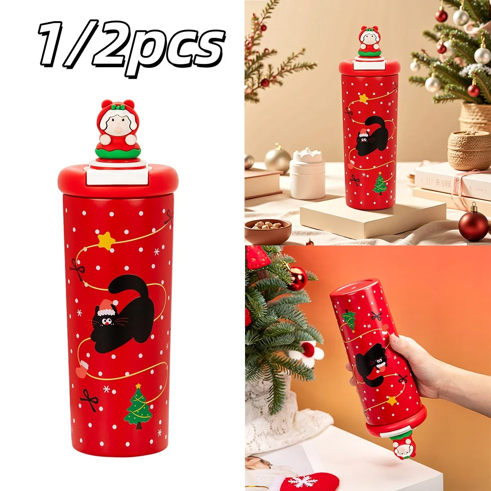 Weihnachtliche Edelstahl‑Isolierflasche, auslaufsicher, große Kapazität