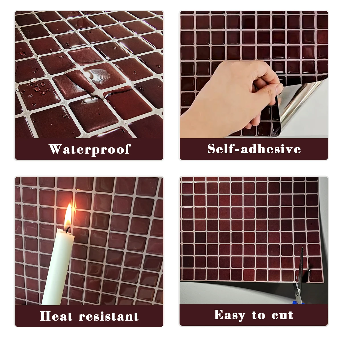 Die selbstklebenden 3D-Wandfliesen bieten eine stilvolle und schnelle Möglichkeit zur Verschönerung von Wohnräumen. Die realistische Optik sorgt für ein modernes Ambiente und eignet sich ideal für Küche, Bad oder Wohnzimmer. Dank wasserabweisender Oberfläche sind die Fliesen besonders pflegeleicht und langlebig. Die Montage erfolgt einfach durch Abziehen und Aufkleben auf glatten, sauberen Oberflächen. Nicht geeignet für raue oder feuchte Untergründe. Pflegehinweis: Mit einem feuchten Tuch reinigen, keine aggressiven Reinigungsmittel verwenden.