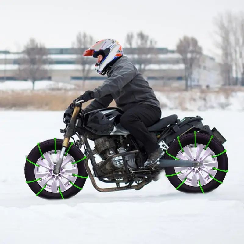 Diese Anti-Rutsch-Schneeketten sind speziell für Motorräder und Fahrräder entwickelt und bieten zuverlässige Traktion auf vereisten und schneebedeckten Wegen. Das Set umfasst 10 strapazierfähige Elemente, die sich schnell anbringen und wieder entfernen lassen. Die robuste Konstruktion verbessert das Fahrverhalten in winterlichen Situationen deutlich. Durch die flexiblen Materialien passen sich die Ketten verschiedenen Reifenbreiten gut an. Sie eignen sich hervorragend als Notfallausrüstung für Wintertouren. Das geringe Gewicht ermöglicht eine einfache Mitnahme im Rucksack oder im Gepäckfach. Nutzen Sie diese Ketten, um bei plötzlichen Wetterumschwüngen sicher unterwegs zu sein. Ideal für tägliche Pendler oder Freizeitfahrten im Winter.
