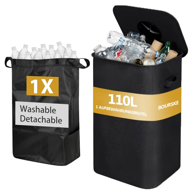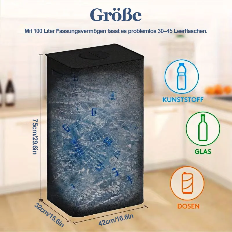 Der 110-Liter-Pfandflaschenbehälter ist eine praktische Lösung zum Sammeln und Transportieren leerer Flaschen und Altglas. Das große Fassungsvermögen eignet sich ideal für Haushalt, Küche oder Vorratsraum. Die waschbaren Taschen erleichtern die Reinigung und sorgen für hygienische Nutzung. Der Behälter hilft, Leergut ordentlich zu sortieren und platzsparend aufzubewahren. Nicht über die empfohlene Belastung hinaus befüllen. Pflegehinweis: Taschen bei Bedarf reinigen und vollständig trocknen lassen.