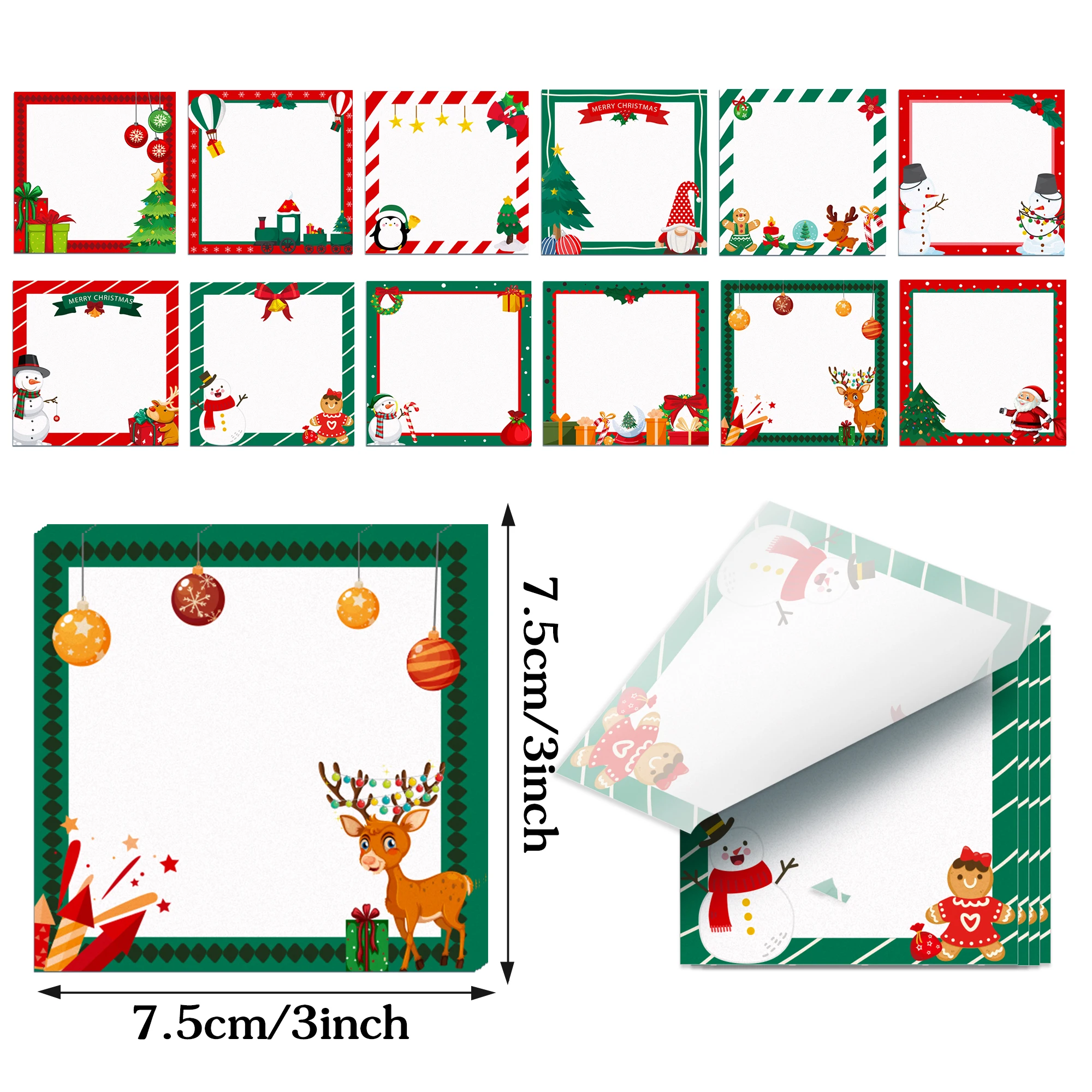 Weihnachts‑Notizblöcke – 12/24/36‑teiliges Set mit selbstklebenden Motiven