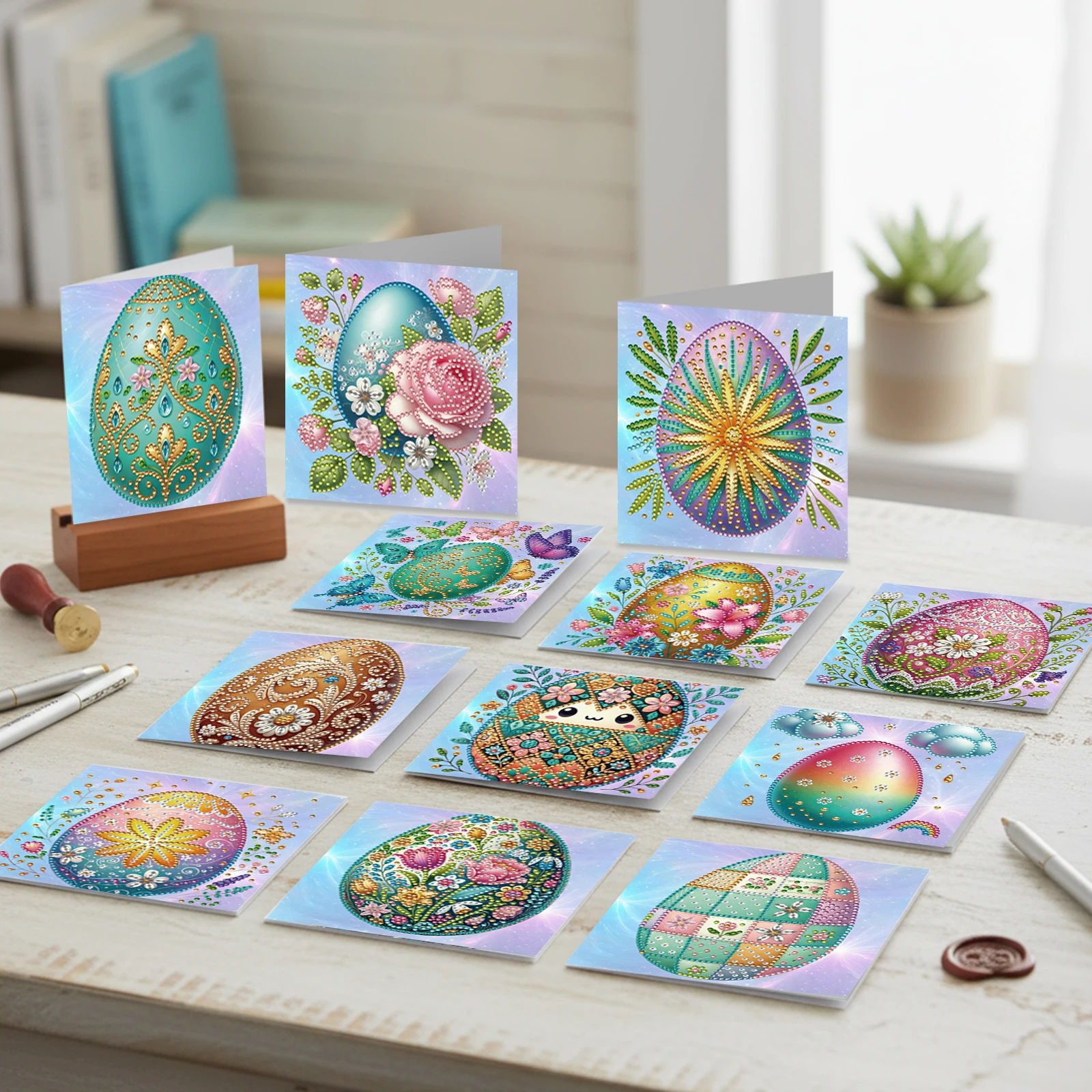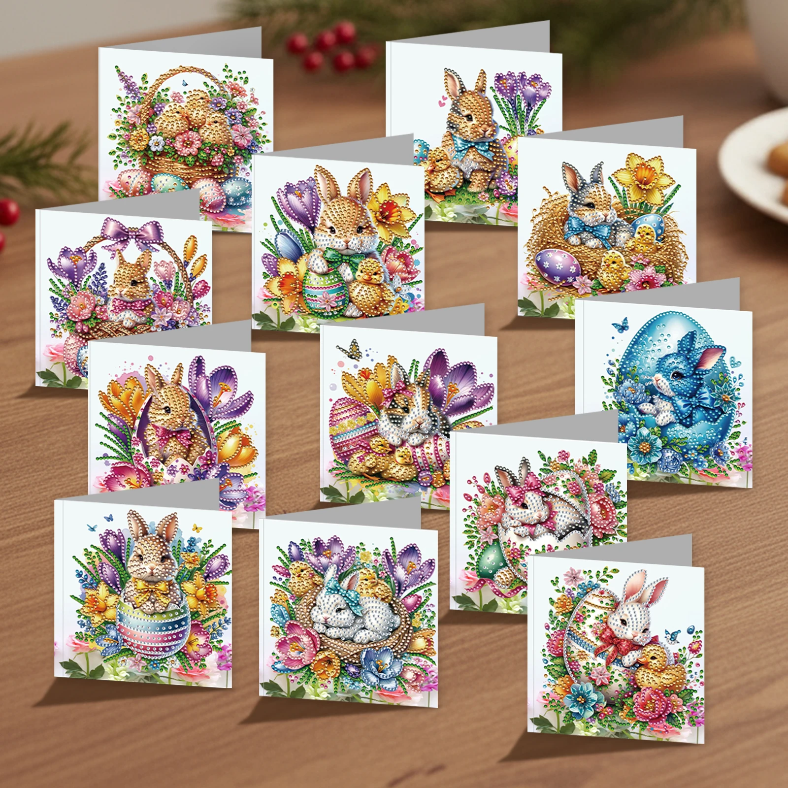 12er DIY Diamant Kunst Grußkarten Set für Weihnachten, Geburtstag & Ostern