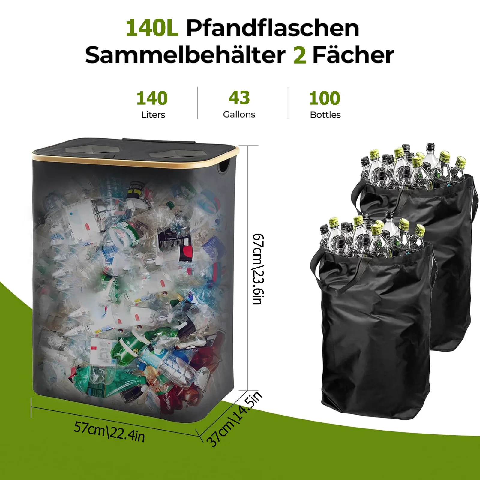 Dieser Sammelbehälter bietet 140 Liter Fassungsvermögen für Flaschen. Mit Deckel für saubere Optik. Geeignet für Haushalt und Recycling. Robust und geräuscharm.