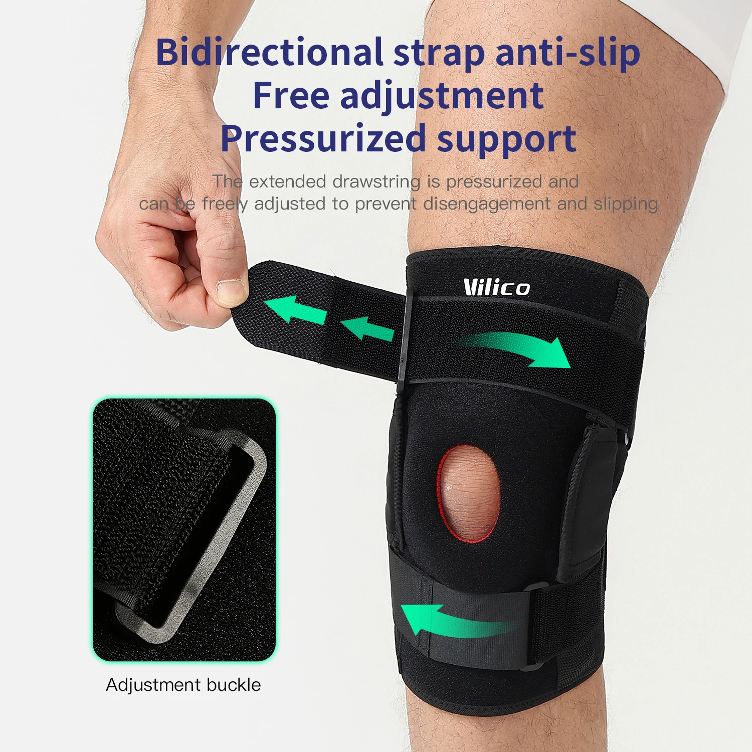 Professionelle Kniebandage mit Patellaöffnung und Metallplatte – schwarz