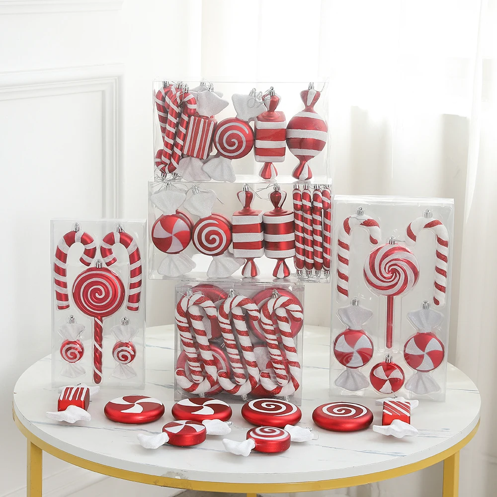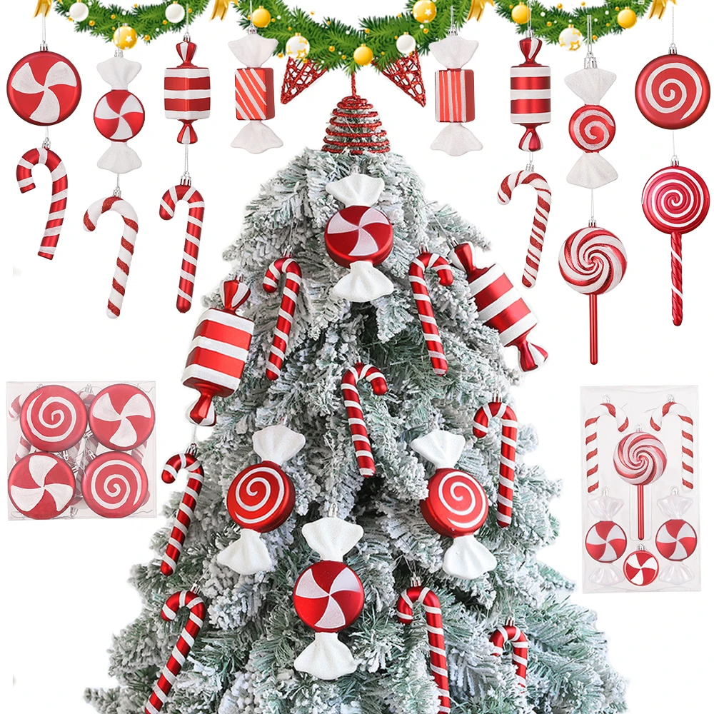 Dekoset mit Anhängern in Form von Keksen, Lollis und Zuckerstangen – ideal zum Hängen an den Baum oder als Spielzeugdeko. Bunt, verspieltes Design für ein fröhliches Zuhause zu Weihnachten & Neujahr.