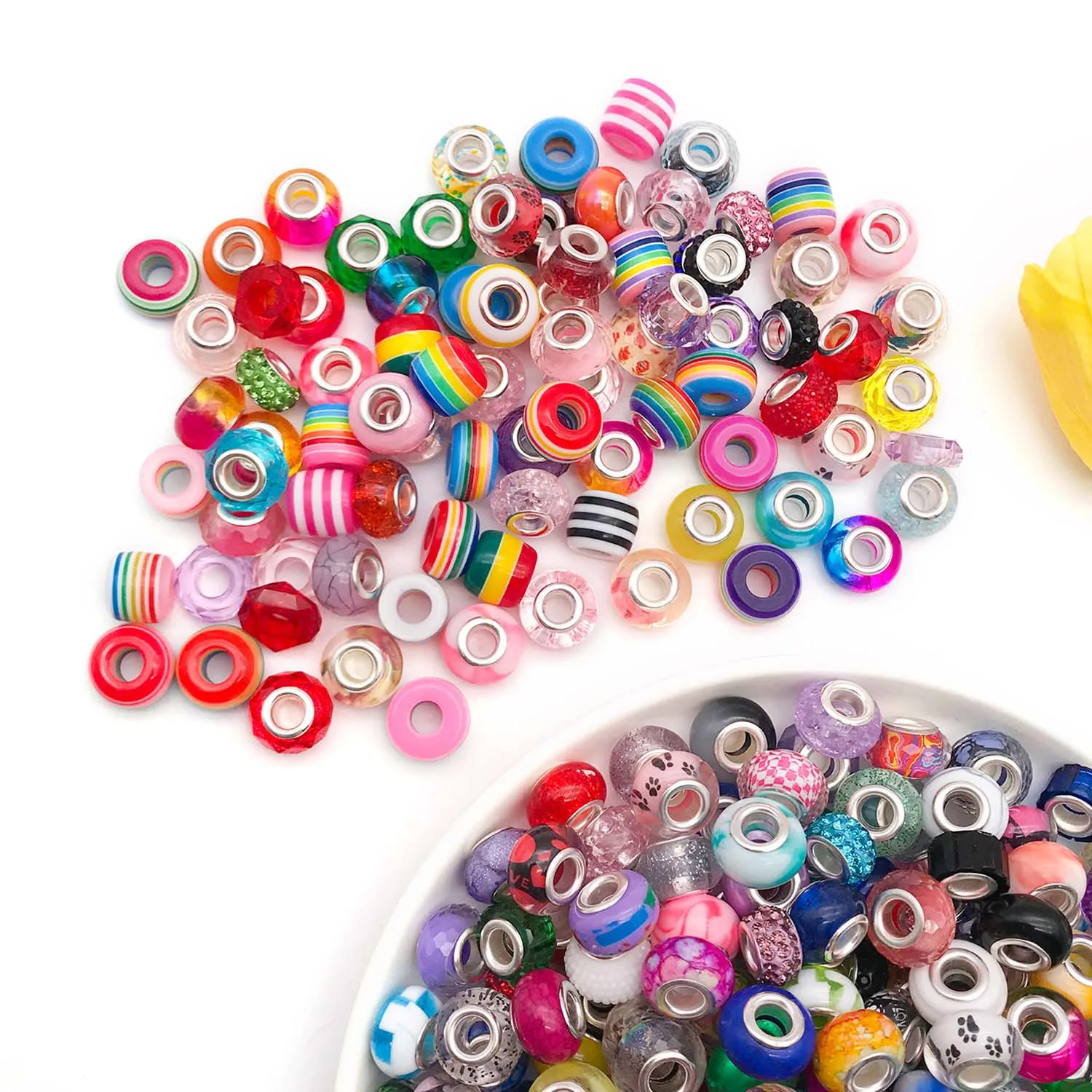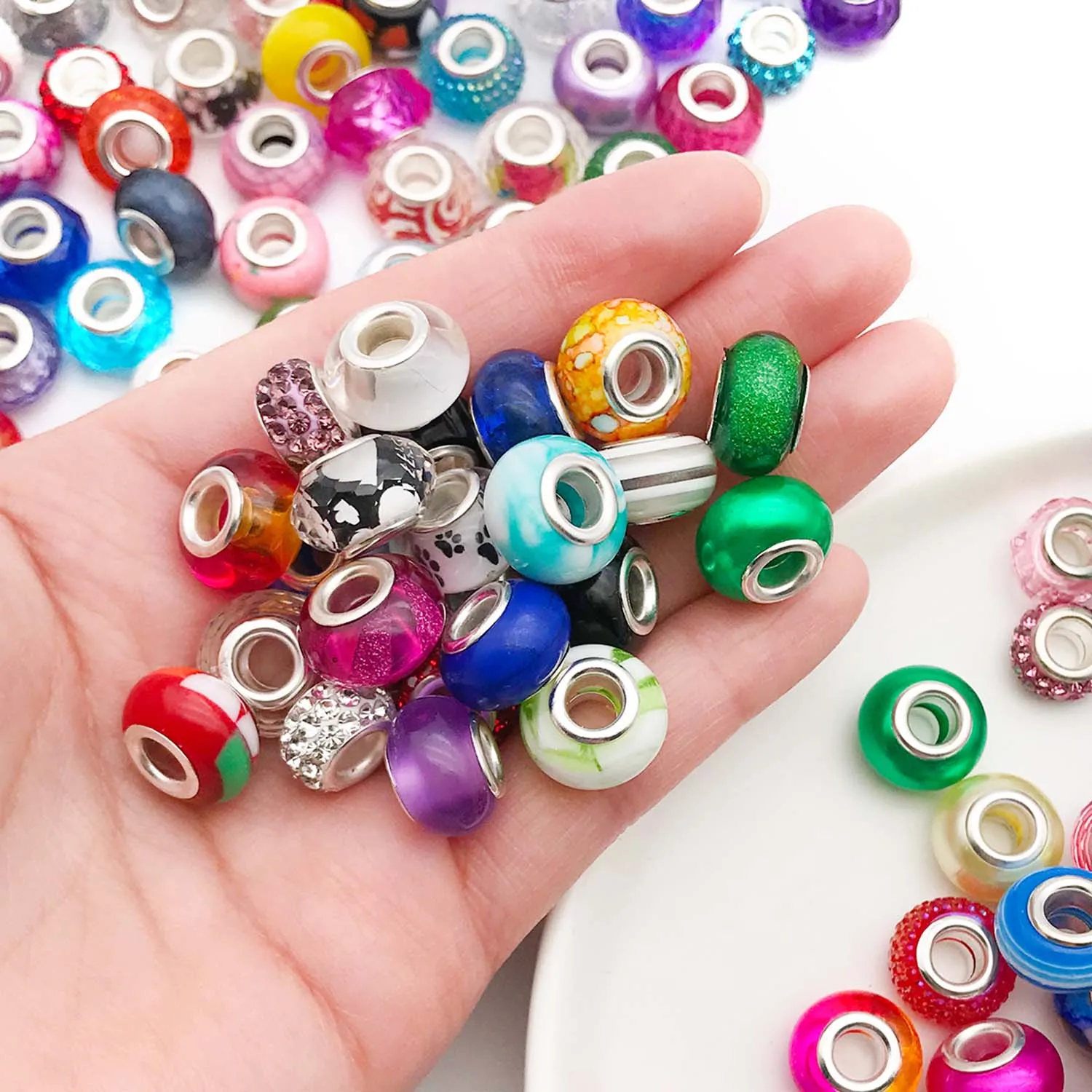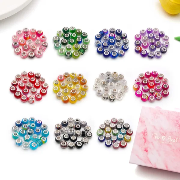 Bunte Harzperlen mit großem Loch – Runde DIY-Perlen