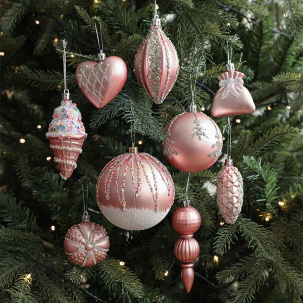 Stilvolle rosa Weihnachtskugel mit Sternanhänger – perfekt für Weihnachtsbaum, Neujahrsparty oder „Liebe“‑Thema im Dekor. Trendfarbe Rosa kombiniert mit festlichem Design macht dieses Ornament zu einem schönen Akzent im Wohnraum oder Geschenk.