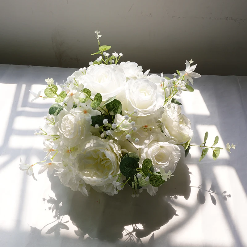 Die elegante Blumenkugel eignet sich perfekt für Hochzeitsdekorationen oder Tischarrangements. Pflegehinweis: Staub vorsichtig entfernen.