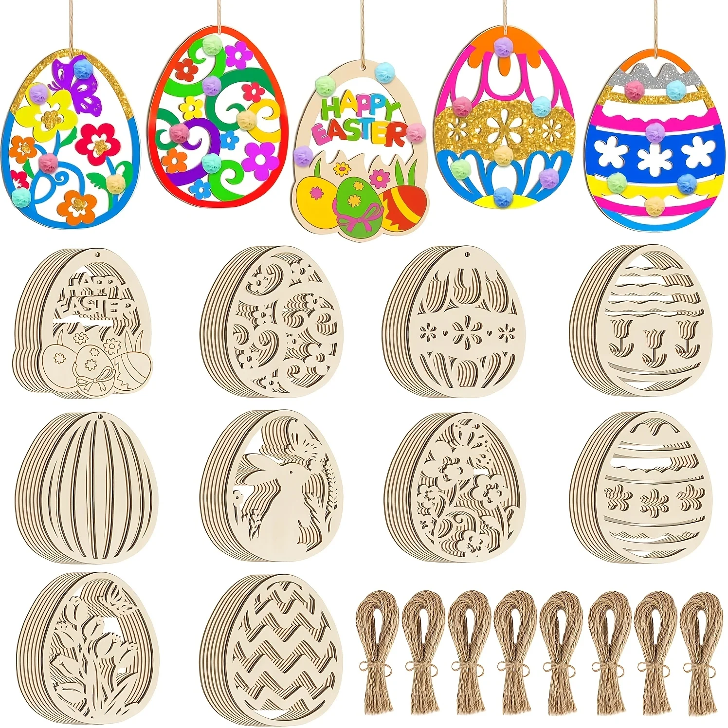 Holz Osterei Rohlinge Set – DIY Bastelanhänger Frühling