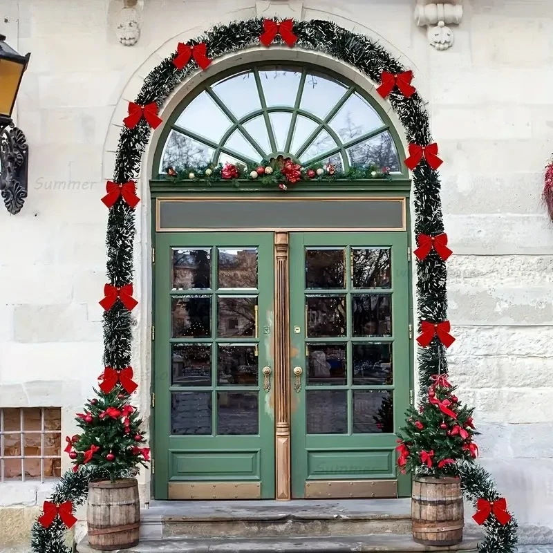 Weihnachtsgirlande Weiß‑Dunkelgrün mit Lametta (2 m)