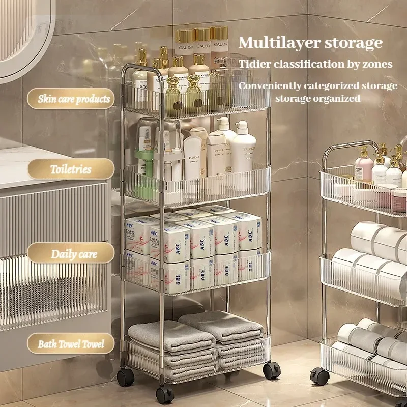 Acryl-Trolley-Regal mit Hängekorb für Küche und Bad