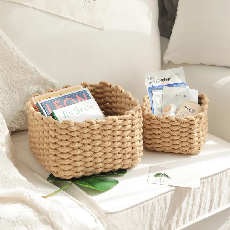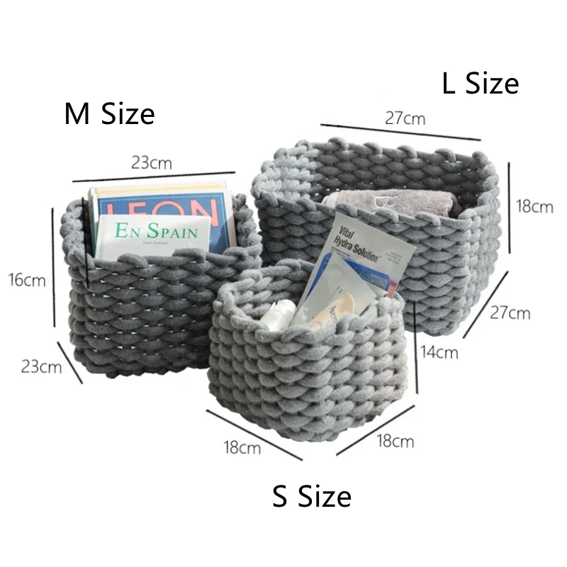 3 Größen NoNordic Baumwollseil-Aufbewahrungskorb in 3 Größenrdic Cotton Line Handgewebter Aufbewahrungskorb, grobes Seil, Desktop-Organizer, Box, Babyspielzeug, Snack, Schlüssel, Tuch, Kosmetik, Kleinigkeiten