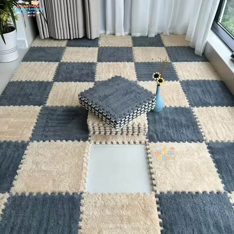 Weiche Plüsch‑Fitnessmatte 30×30 cm, 1 cm dick, rutschfest und stoßabsorbierend
