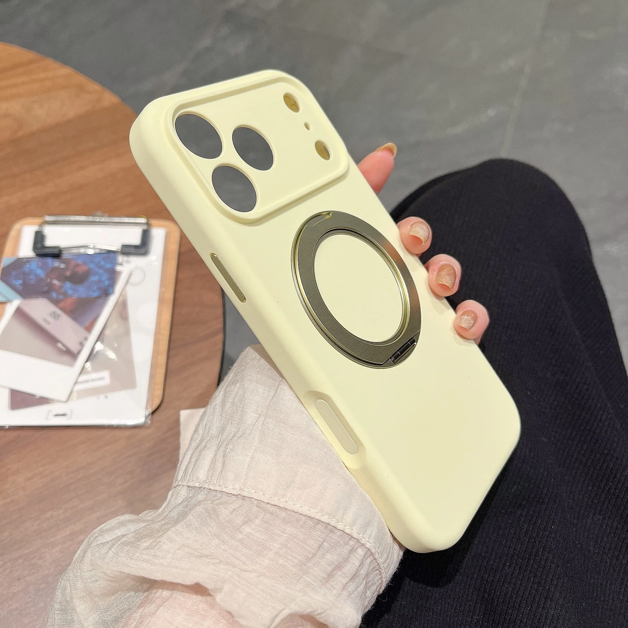 Diese innovative Hülle integriert Flüssigkeit zur Dämpfung von Stürzen, kombiniert mit einem rotierenden Ständer und MagSafe‑Magnetik. Die Struktur schützt das iPhone rundum, absorbiert Aufprälle besonders effektiv und bietet flexible Aufstellmöglichkeiten. Die Oberfläche bleibt klar oder dezent strukturiert, Aussparungen sind präzise gefertigt. Für Nutzer, die maximale Schutzlogik und Flexibilität erwarten.
