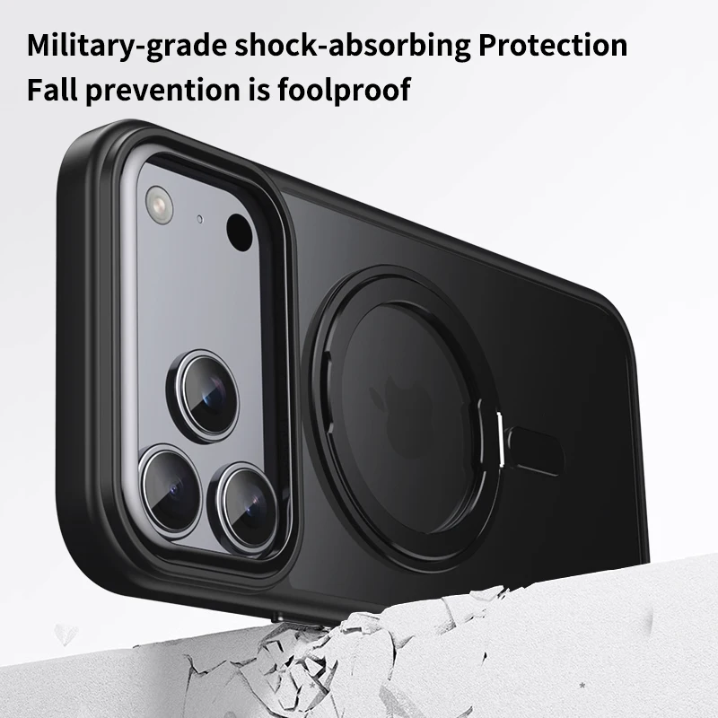 360° Rotierbare Magnet‑Ständer‑Hülle (Premium Metallknopf) für iPhone 11–17 (inkl. Air / 16e)