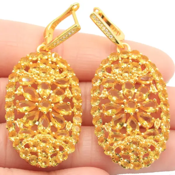 Große Citrin CZ Hochzeitsohrringe – Gold & Silber Damenohrringe