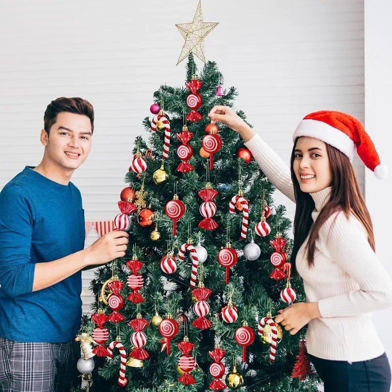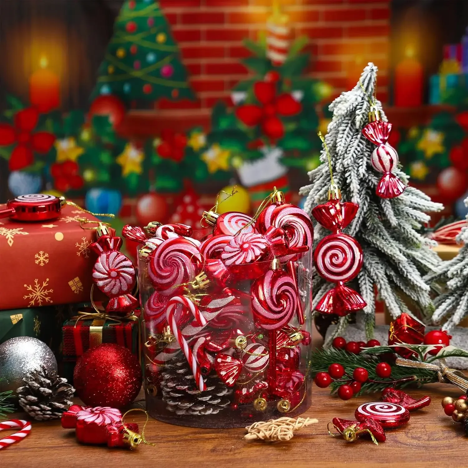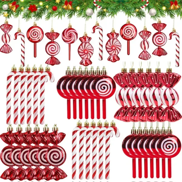 Farbenfrohe Anhänger in Lutscher‑ oder Zuckerstangen‑Form – in Sets mit 6 bis 24 Stück. Ideal für Baum, Geschenke oder festliche Raumgestaltung. Leicht und langlebig – perfekt für Weihnachten & Neujahr.