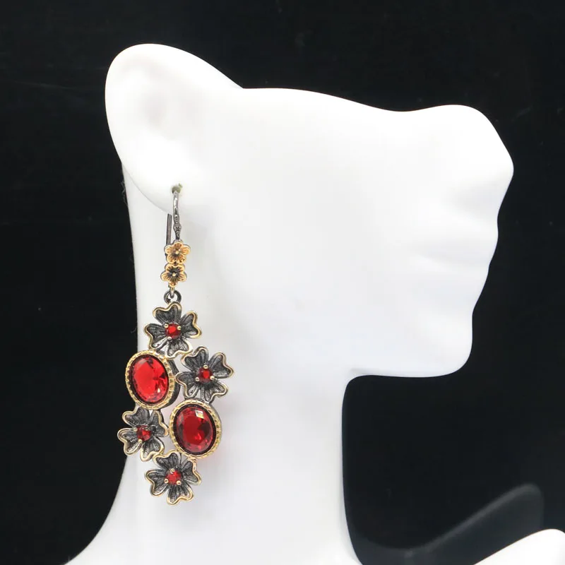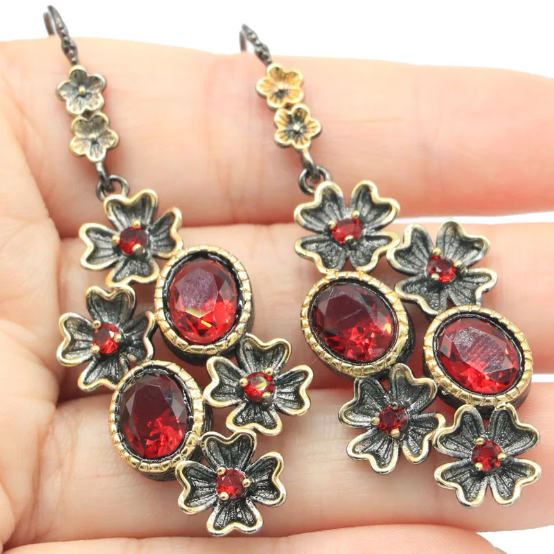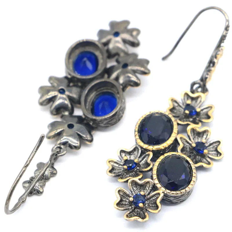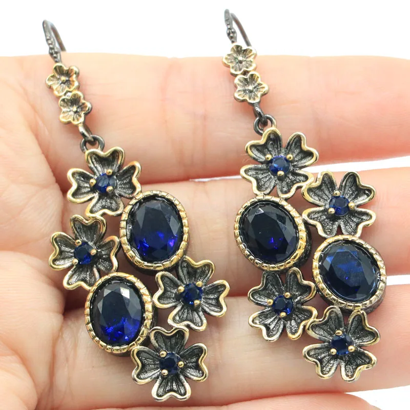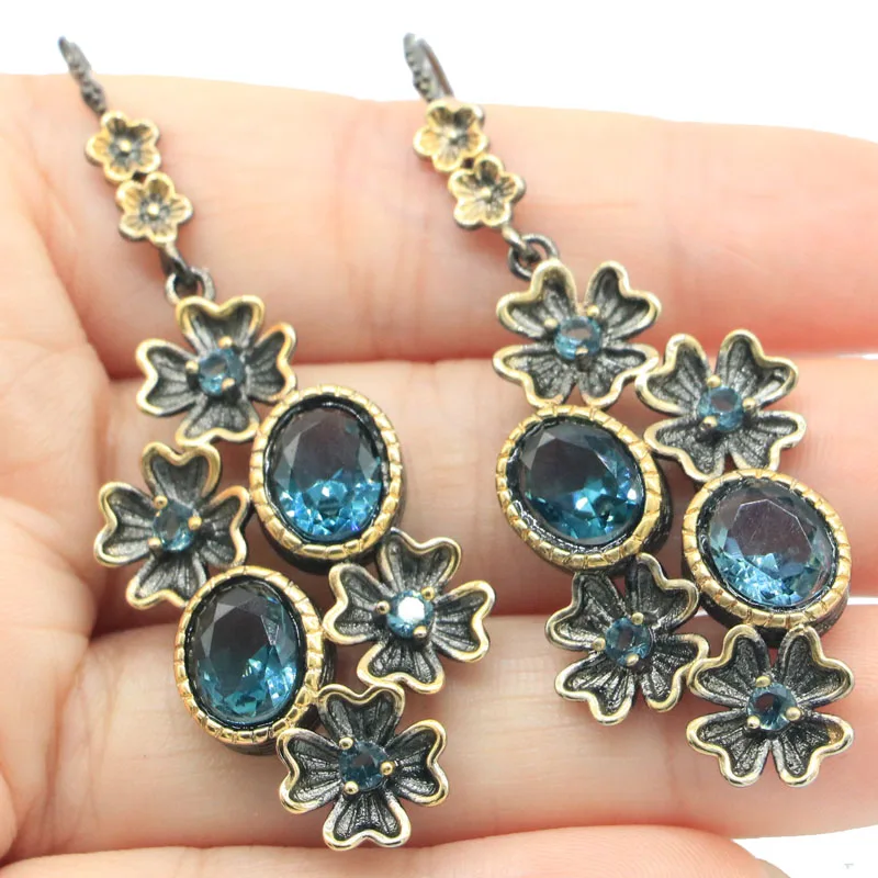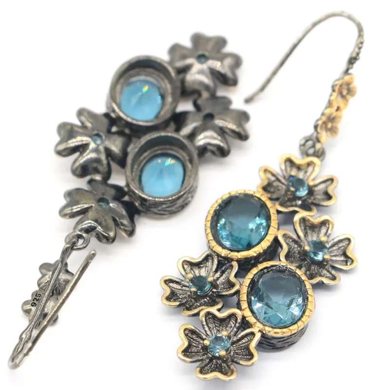 Rhodolith Granat Tansanit Ohrringe – Goldfarbene Edelstein-Ohrringe aus Silber