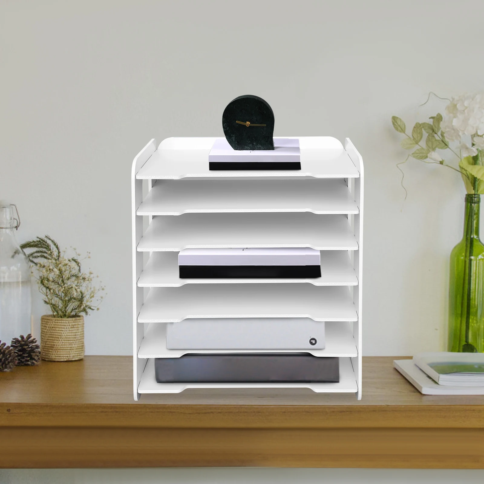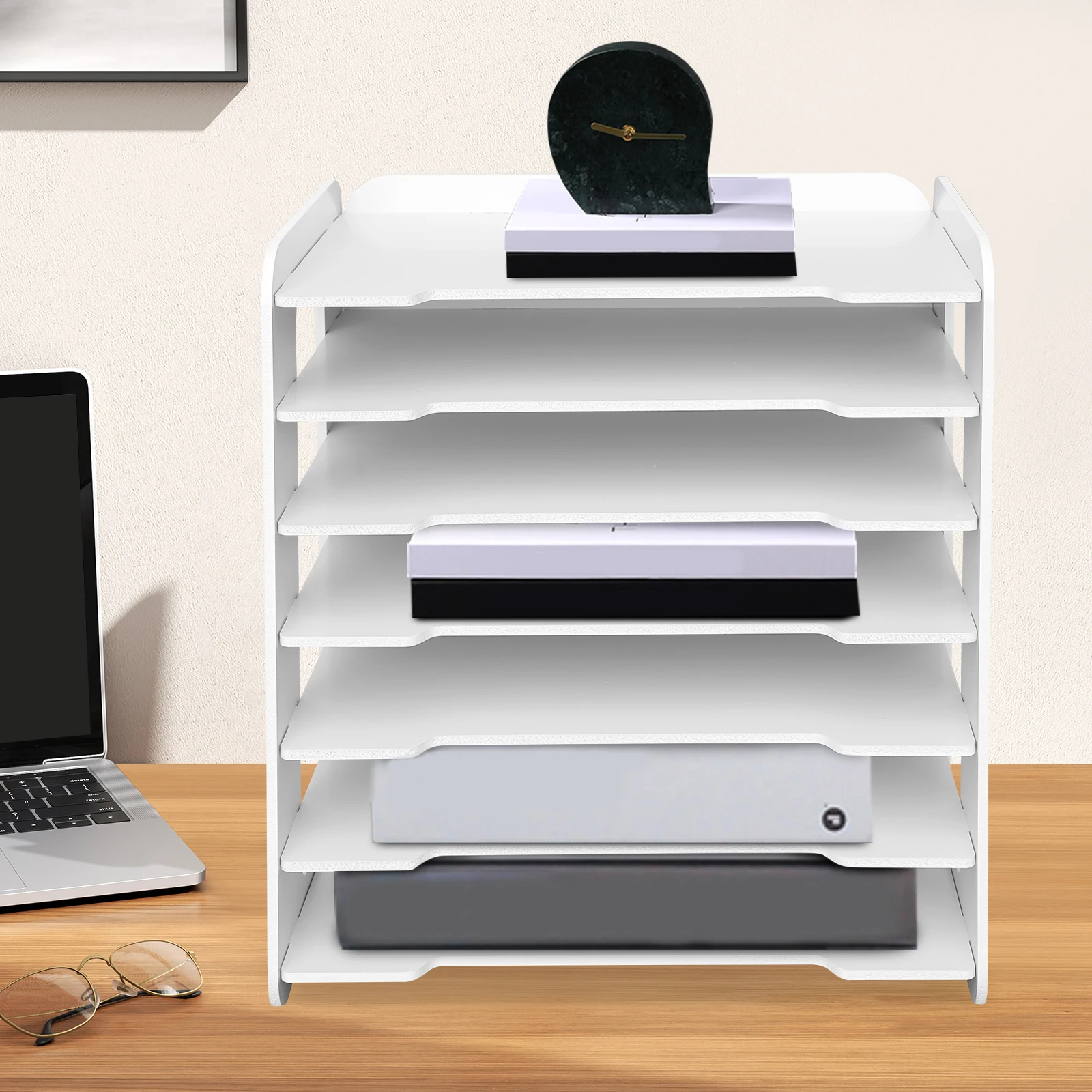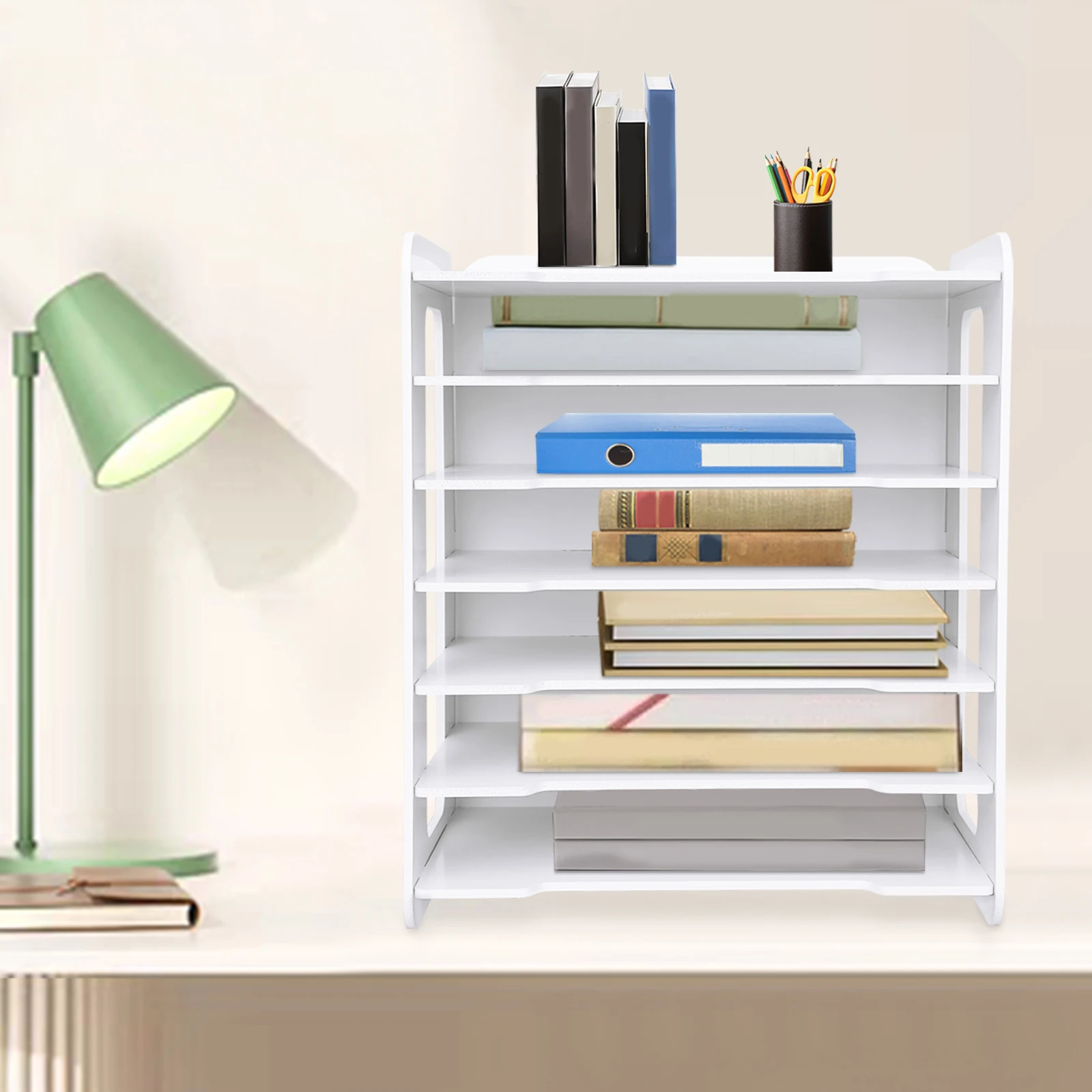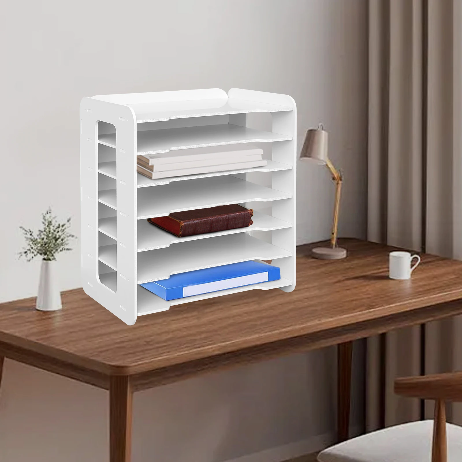 7‑stufiges PVC‑Dokumentenregal – Weißer Büro‑Desktop‑Organizer