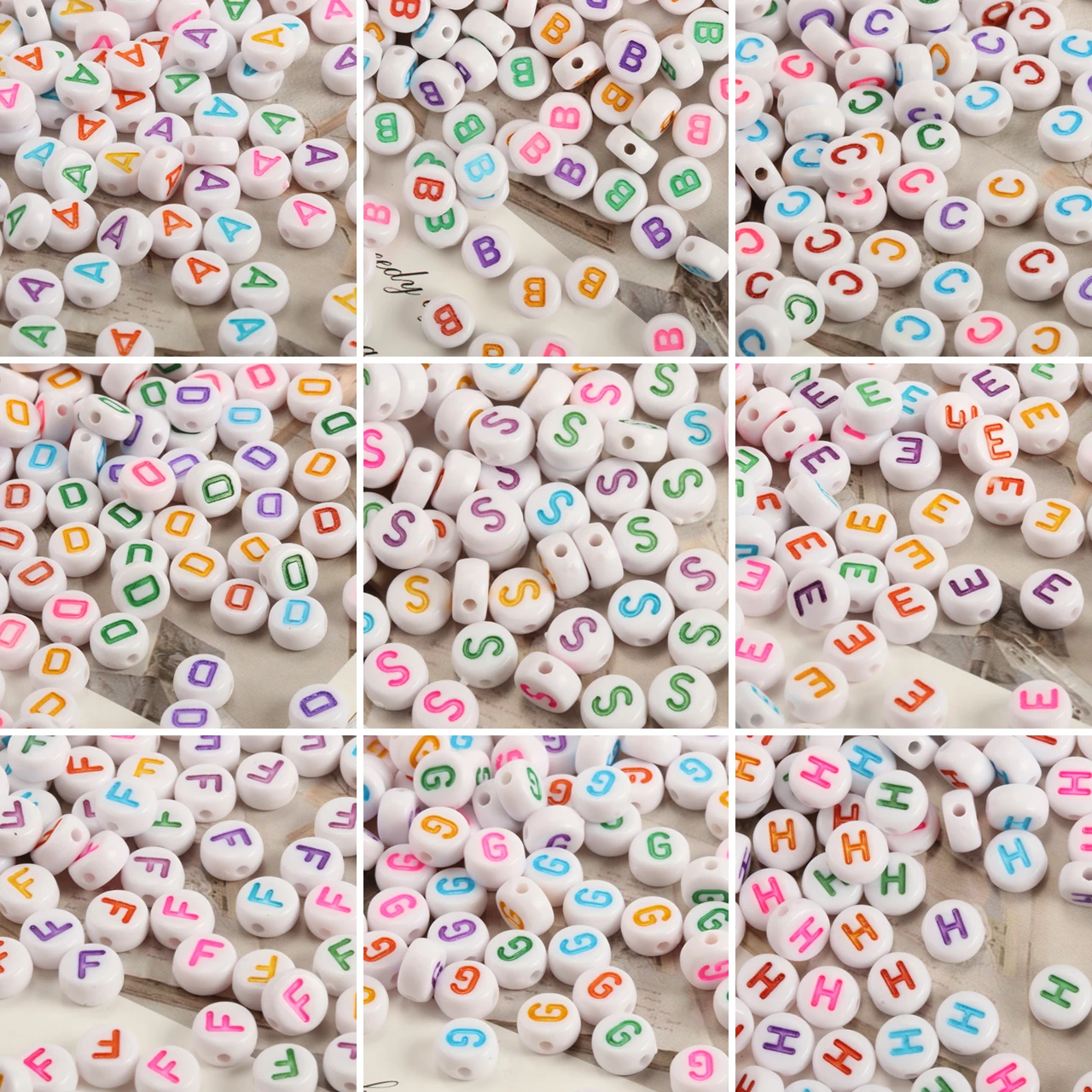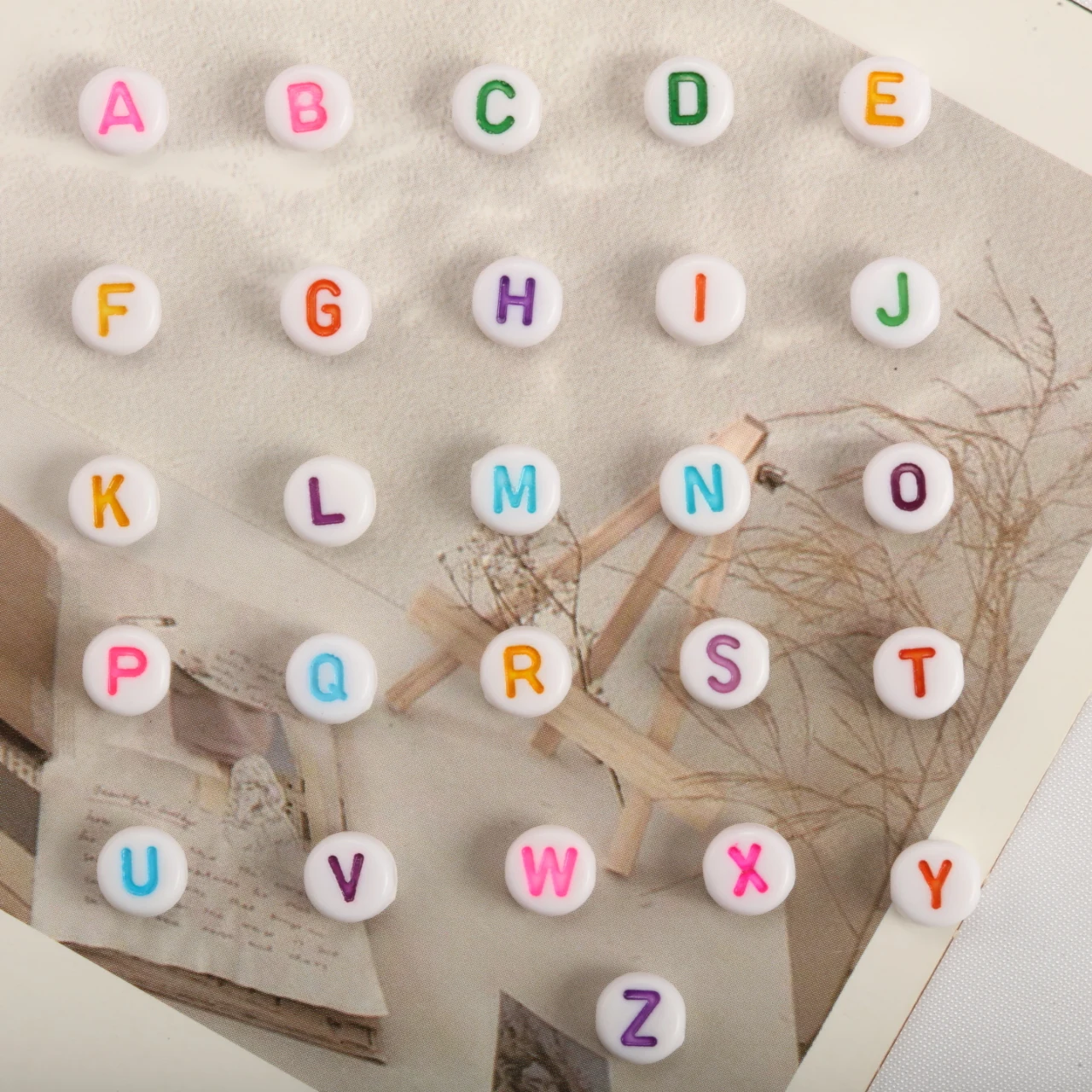 Acryl Alphabet Spacer Perlen – Runde Buchstabenperlen 7×4 mm