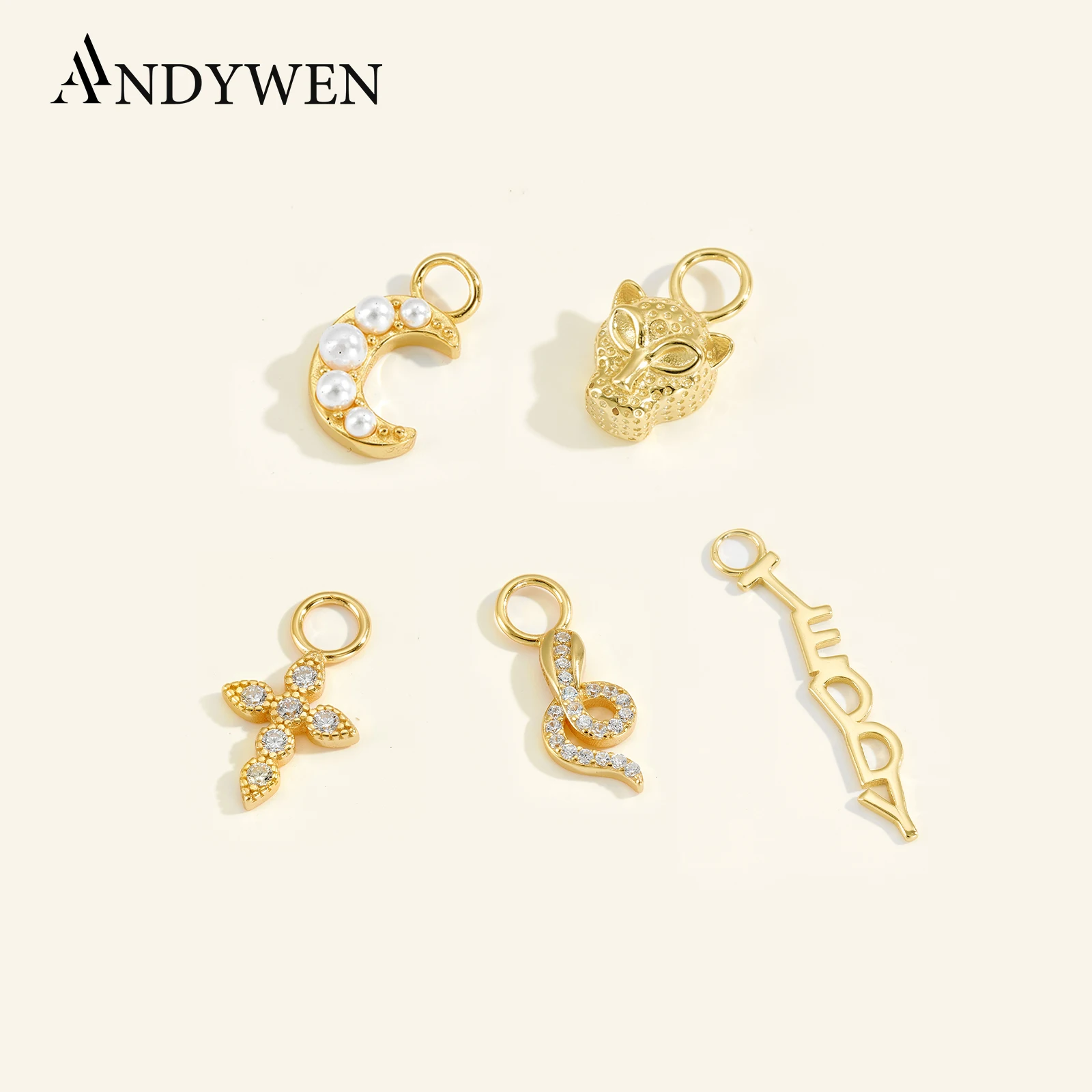 ANDYWEN Zirkon Charm Anhänger – 925 Silber Goldfarben Damen Schmuck