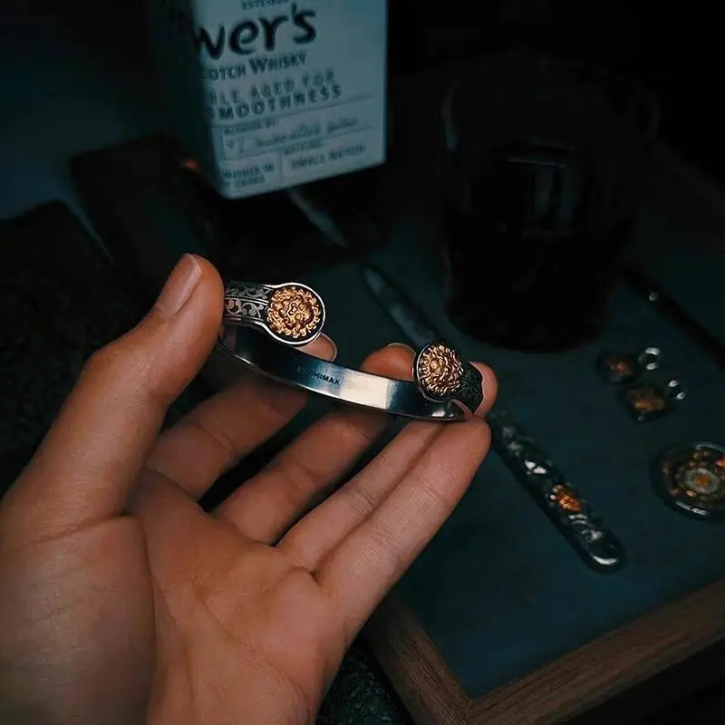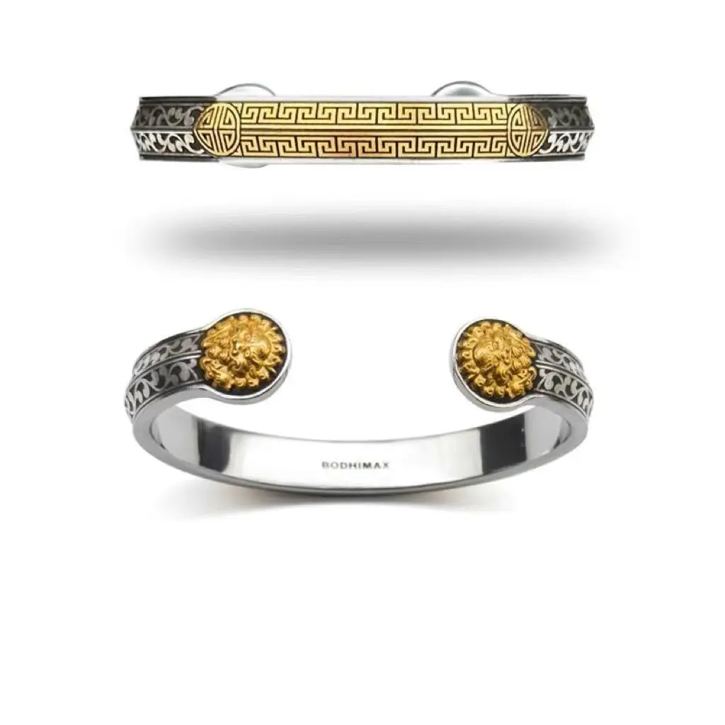 Antiker Vajra Armreif – Goldfarbenes Retro Armband im Drei-Reiche-Stil