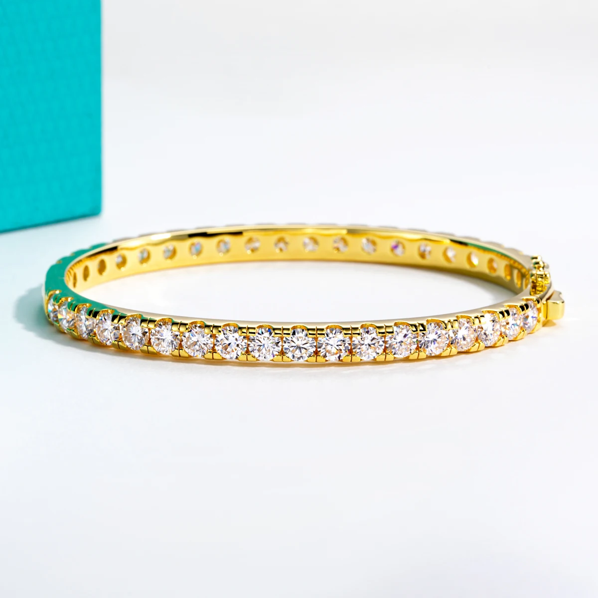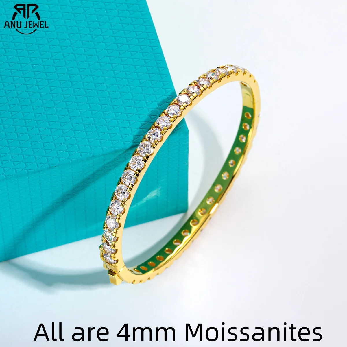 AnuJewel Moissanit Armreif 4mm – 925 Silber & 14K Gelbgold vergoldet
