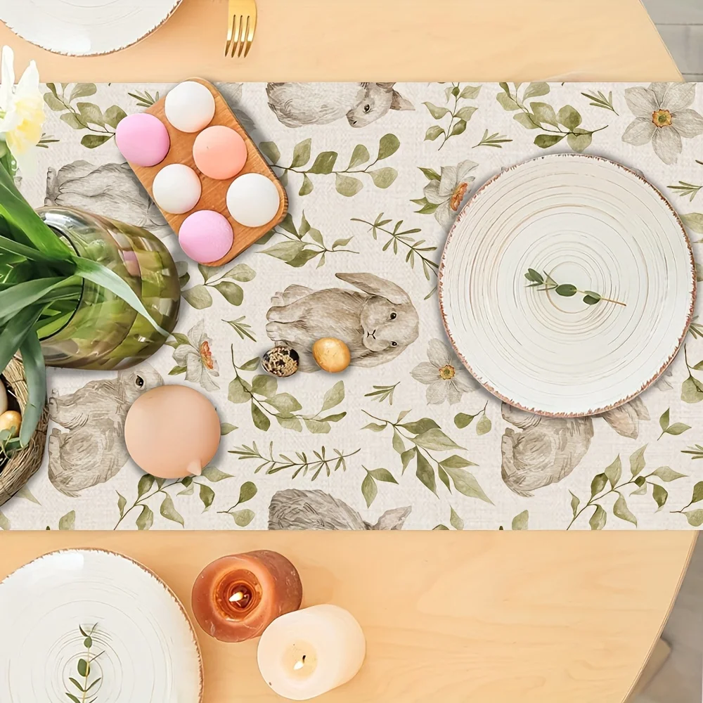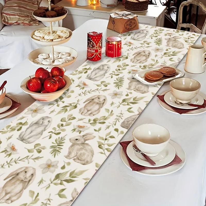 Aquarell Osterhasen Tischläufer – Rustikale Frühlings Tischdeko
