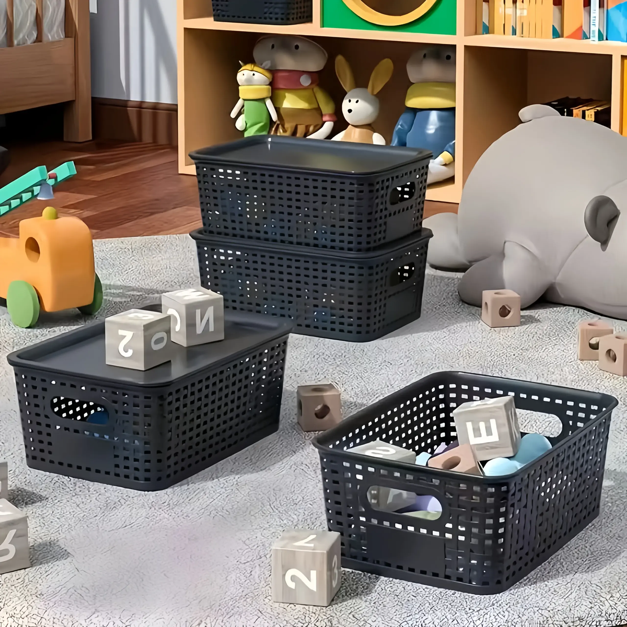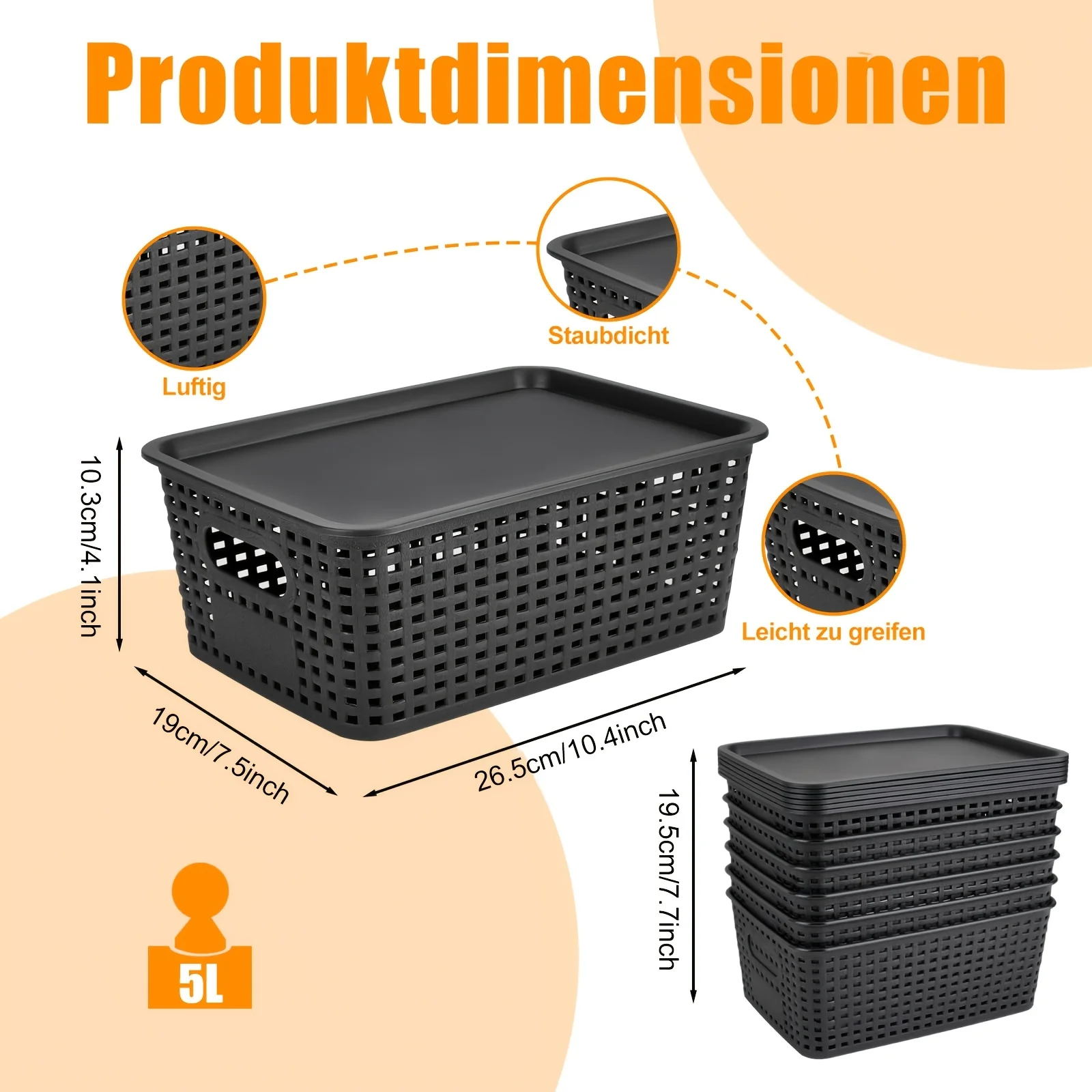 Der Aufbewahrungskorb mit Deckel ist ideal für Bürobedarf, Dokumente und kleine Alltagsgegenstände. Er unterstützt eine ordentliche Organisation auf dem Schreibtisch, im Regal oder in der Schublade. Das geschlossene Design schützt den Inhalt vor Staub und sorgt für ein aufgeräumtes Erscheinungsbild. Pflegehinweis: Mit einem feuchten Tuch reinigen.