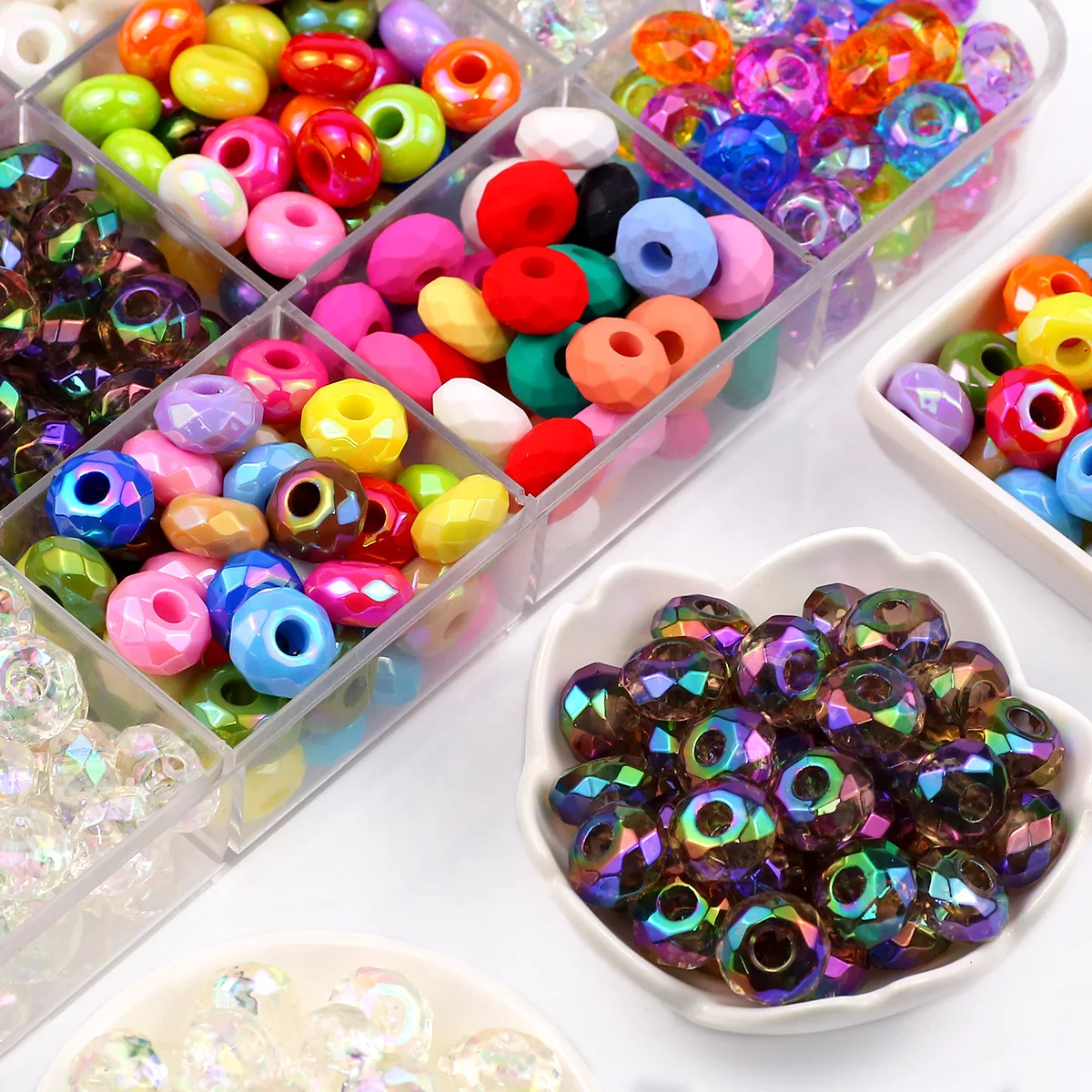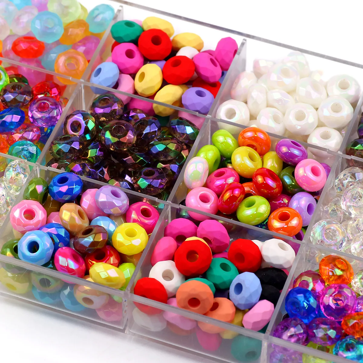 UV-Kristallperlen mit großem Loch – Bunte Glas-Spacer 14 mm