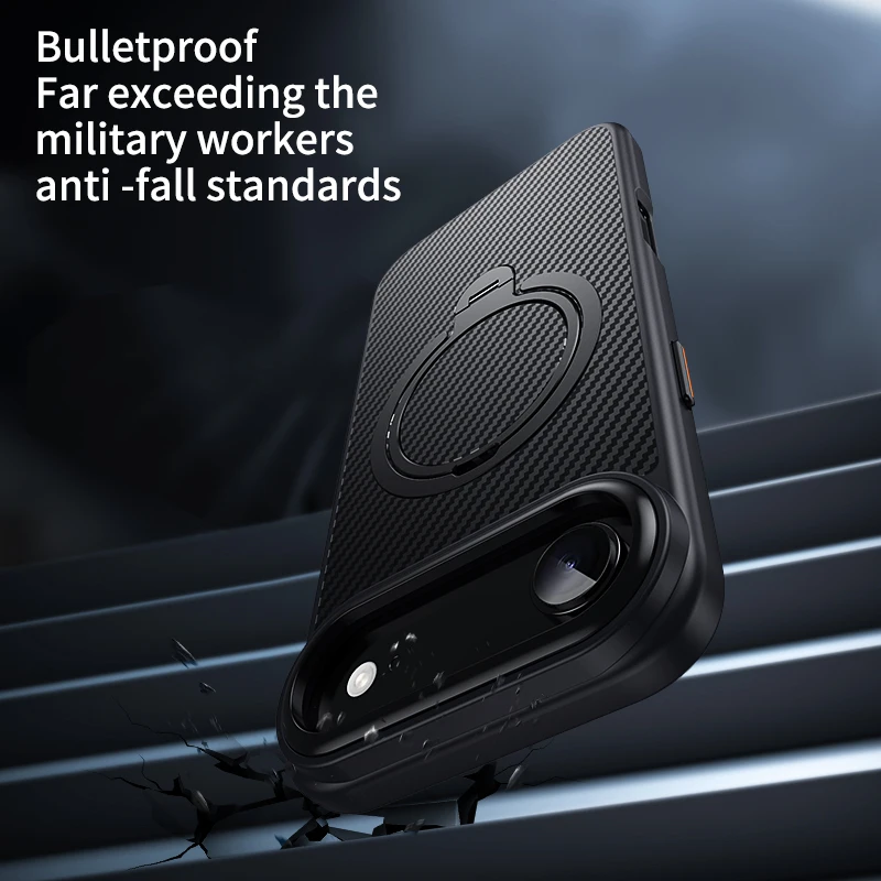 Carbon Fiber Rotierender Ständer MagSafe Hülle (iPhone 11–17)