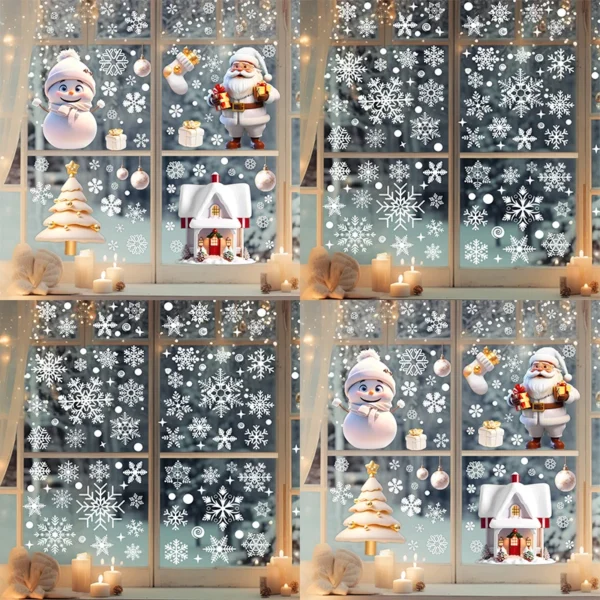 Cartoon Weihnachtsaufkleber – Santa, Schneemann & Schneeflocken aus PVC
