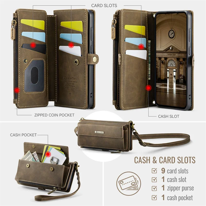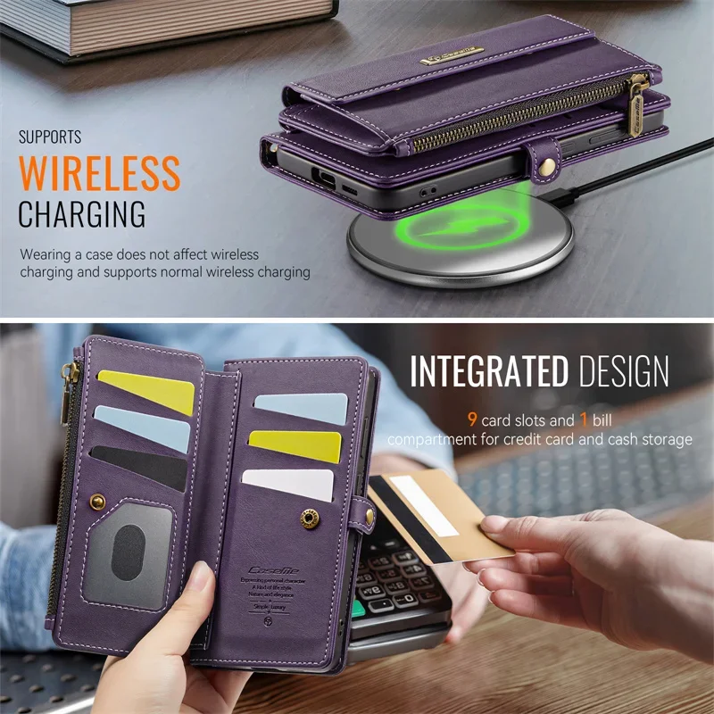 CaseMe Reißverschluss Wallet Flip Handyhülle für Samsung Galaxy