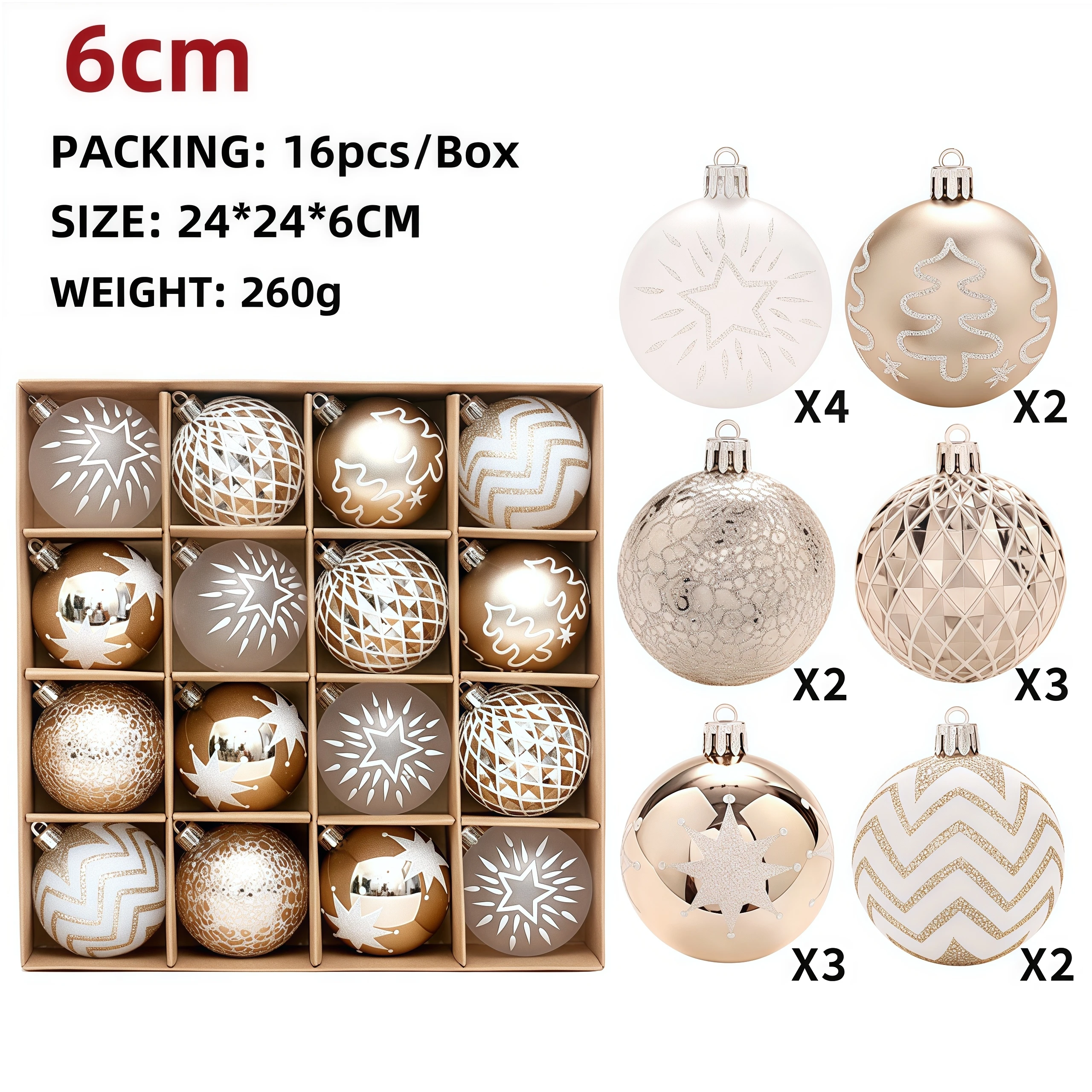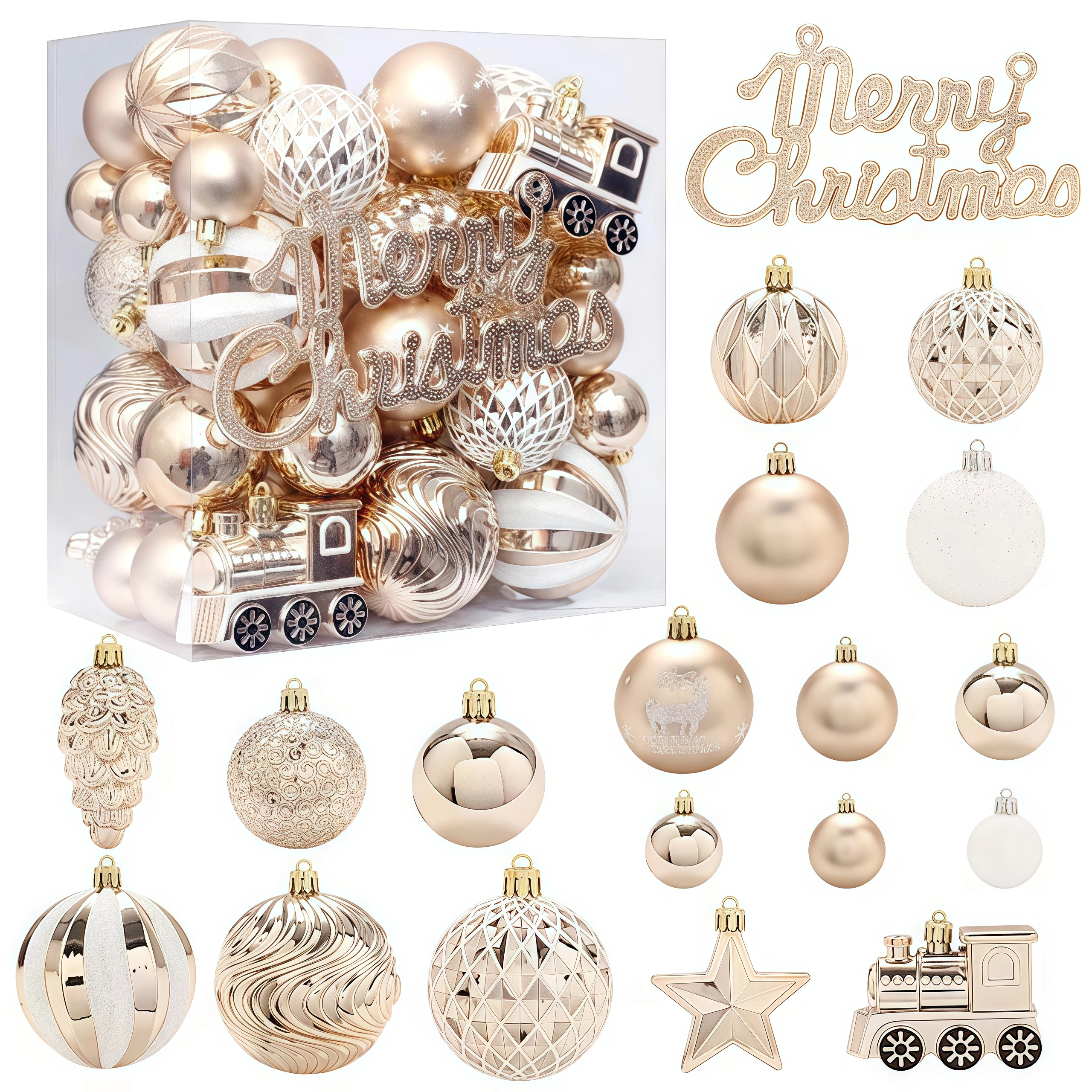 Edles Set Weihnachtskugeln in Champagner und Gold – hängende Anhänger für Baum, Home und Party. Elegantes Finish, ideal als Geschenk oder zur stilvollen Dekoration.