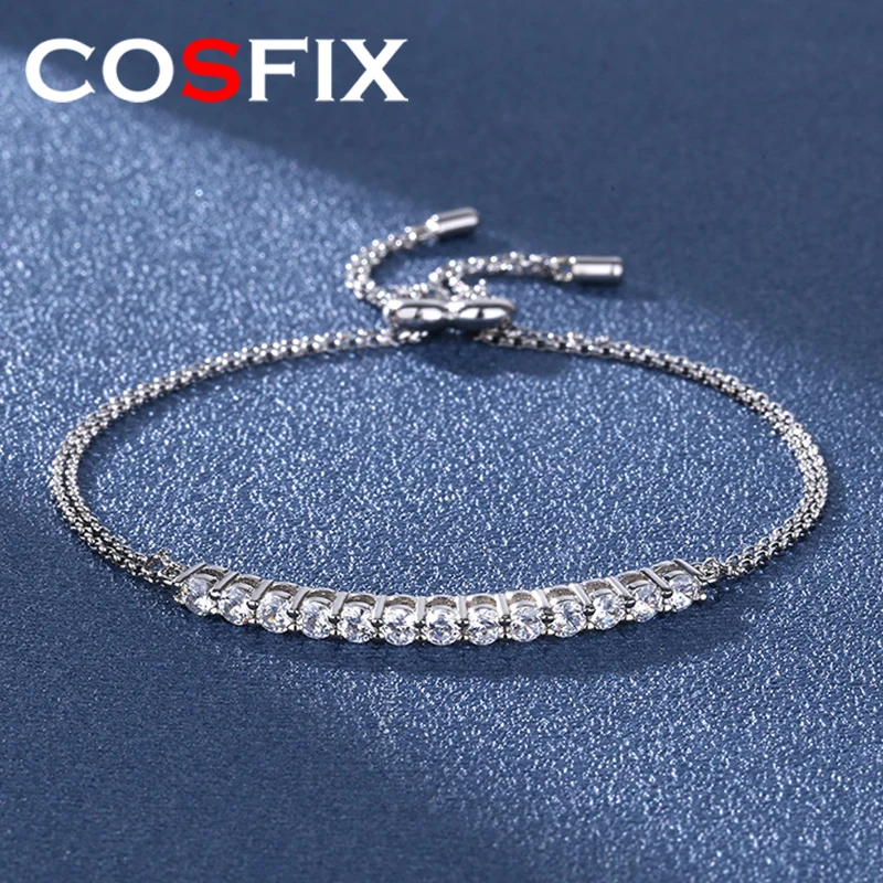 COSFIX Moissanit Kettenarmband – 925 Sterling Silber Weißgold vergoldet
