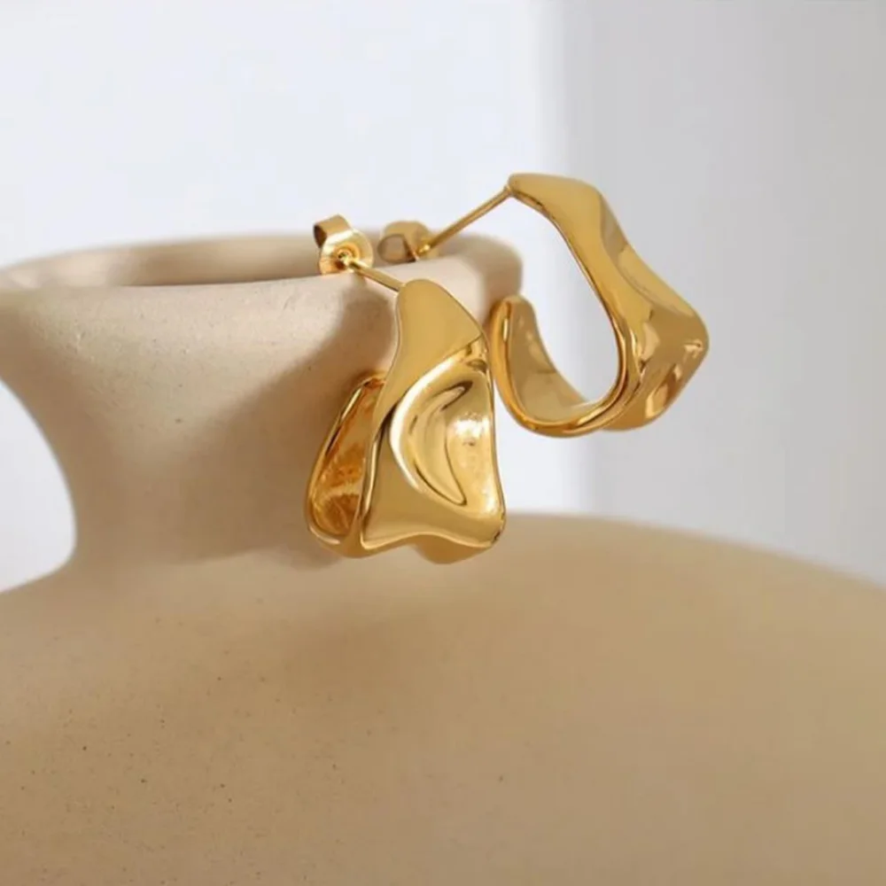 Unregelmäßige Wellen Creolen – Edelstahl Ohrringe Gold- & Silberfarben