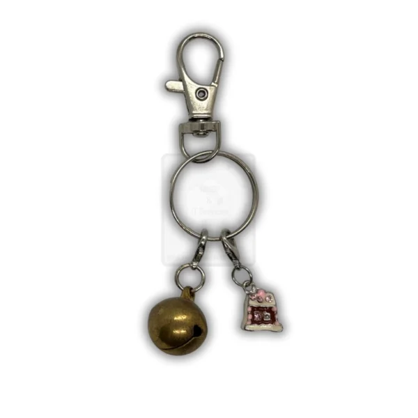 | Material | Metallglöckchen (gold), emaillierter Metallanhänger, Edelstahlring & Karabiner |