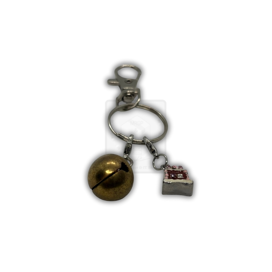Dieser liebevoll gestaltete Schlüsselanhänger vereint ein warm schimmerndes Goldglöckchen mit einem detailreichen Lebkuchenhaus in zarten Rosa- und Goldtönen. Das kleine Haus ist mit filigranen Akzenten verziert und verleiht dem Anhänger eine festliche, märchenhafte Note.