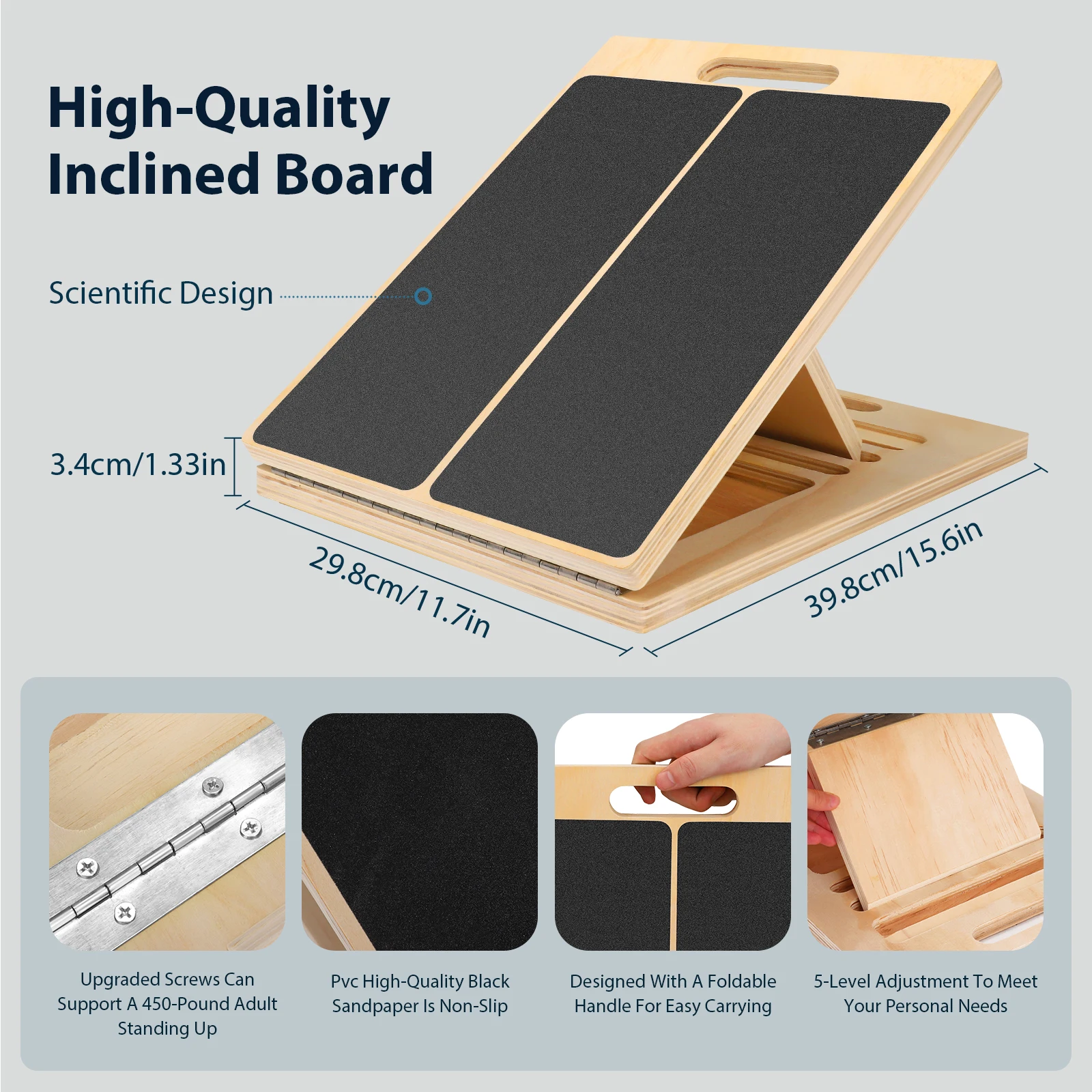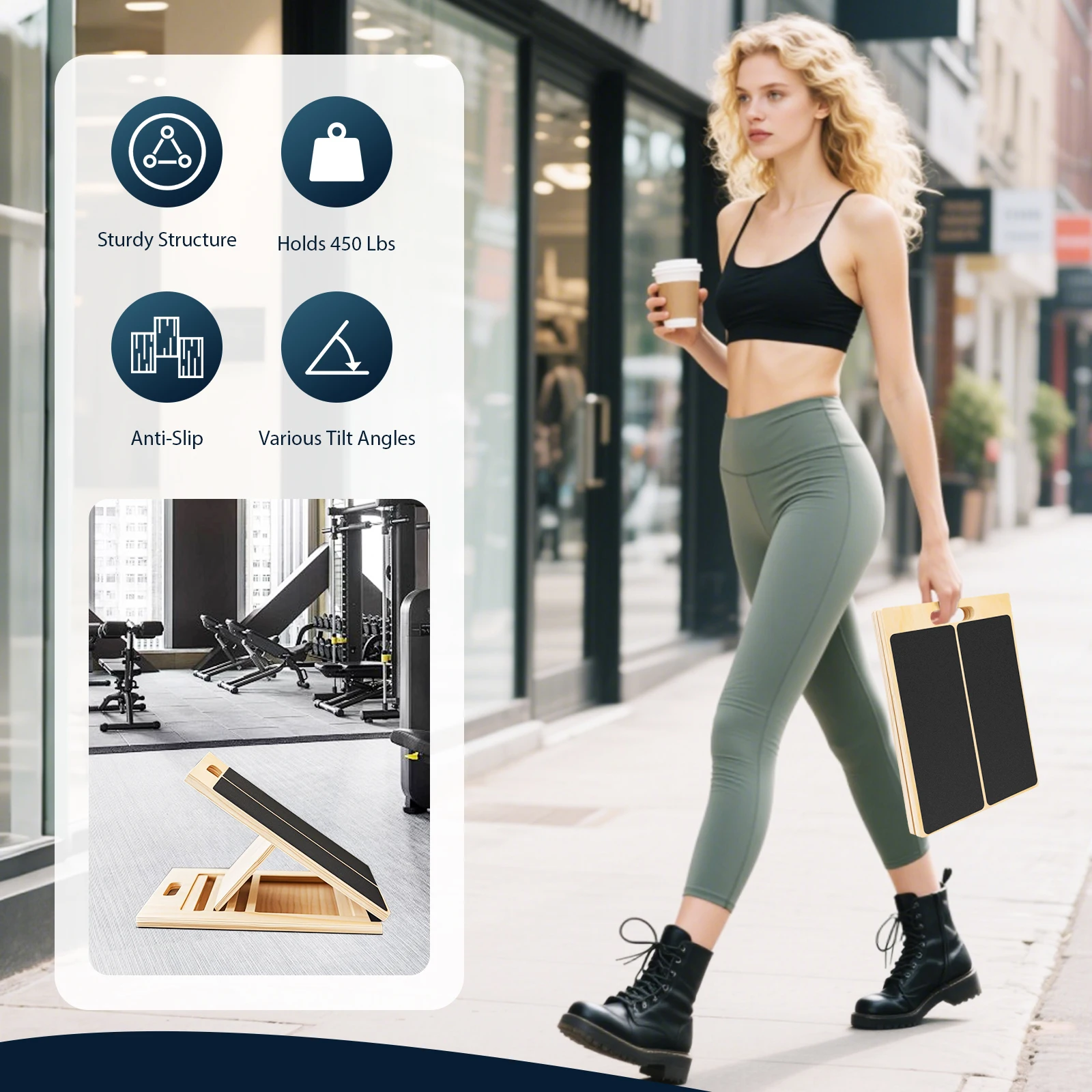 Faltbares Holz‑Neigungsbrett mit verstellbarem Waden‑ und Knöchelstretch