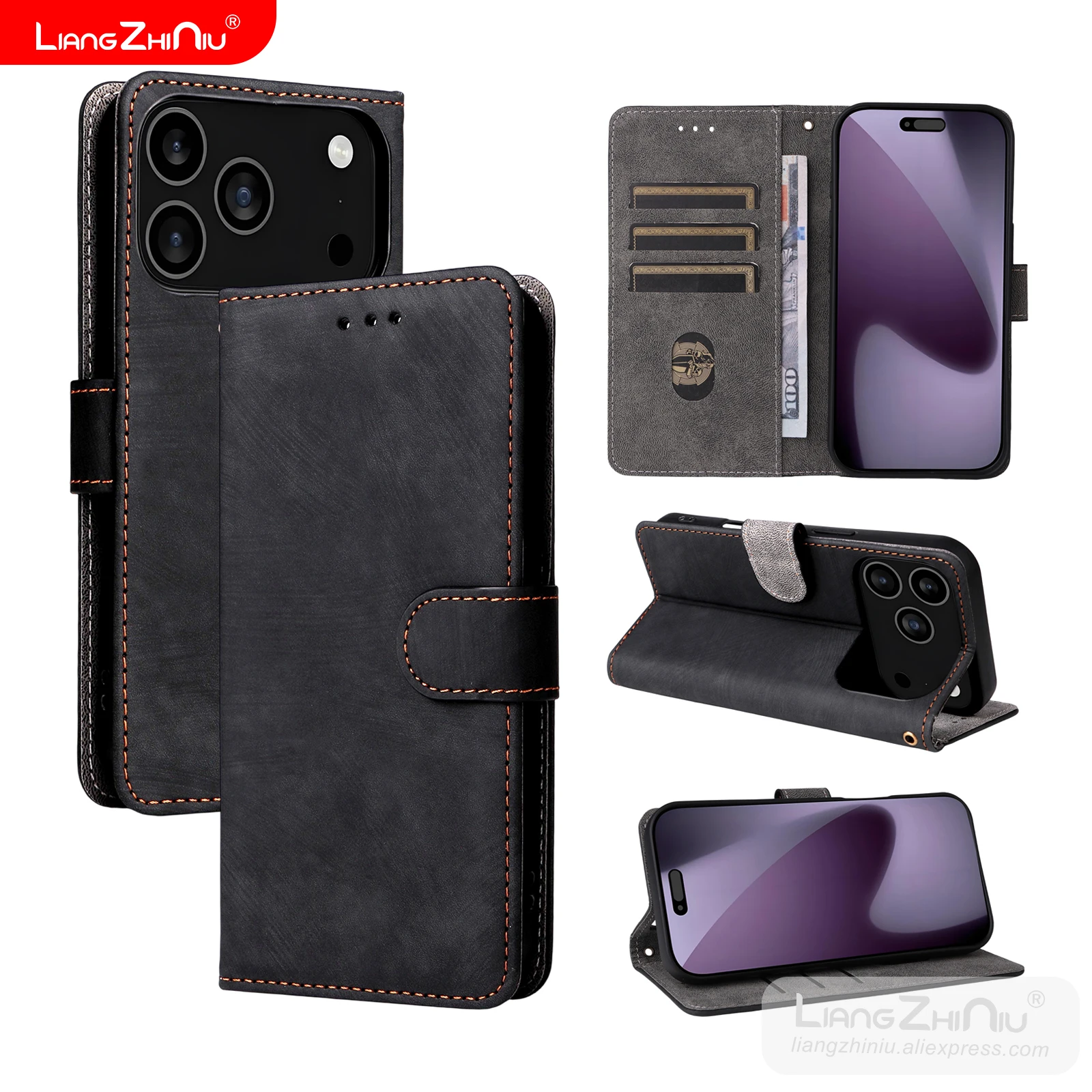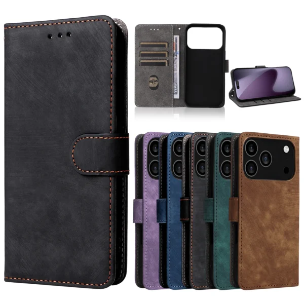 Multifunktionale Flip Lederhülle mit Anti‑Diebstahl‑Technik (iPhone 17 / Air / Pro Max)