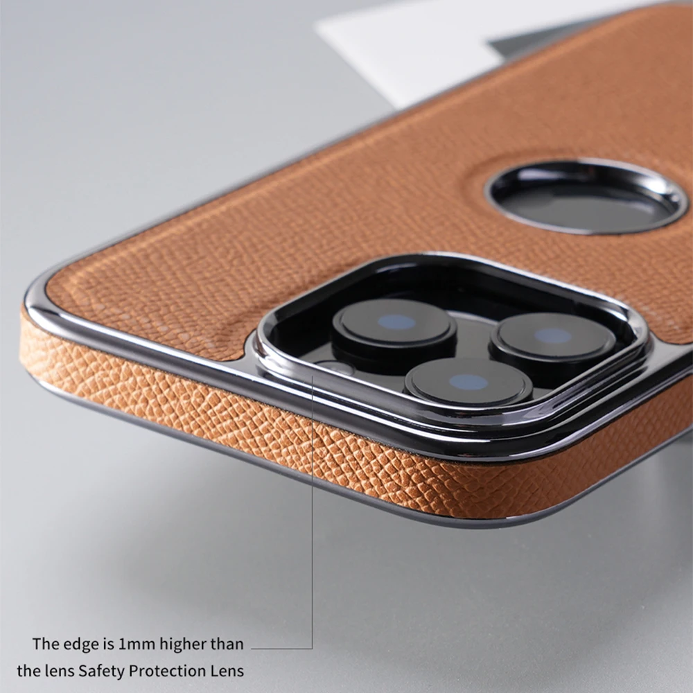Luxus Rindsleder MagSafe Hülle mit Logo & naturgegerbter Beschichtung
