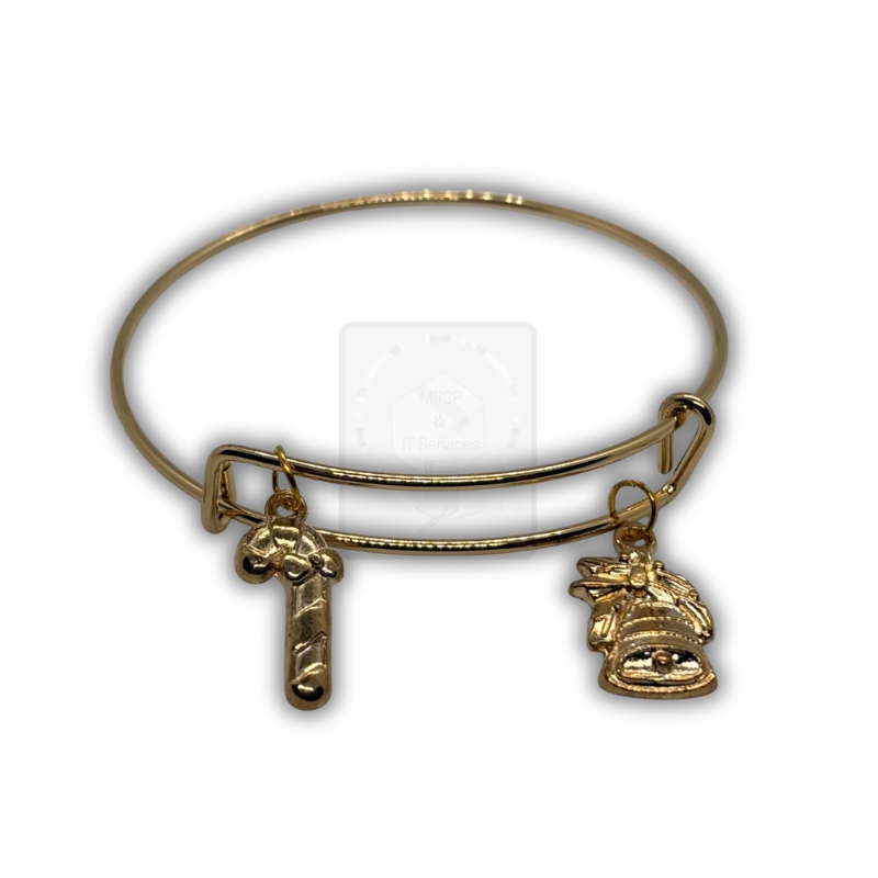Goldenes Weihnachtsarmband mit Zuckerstange & Glockenmotiv
