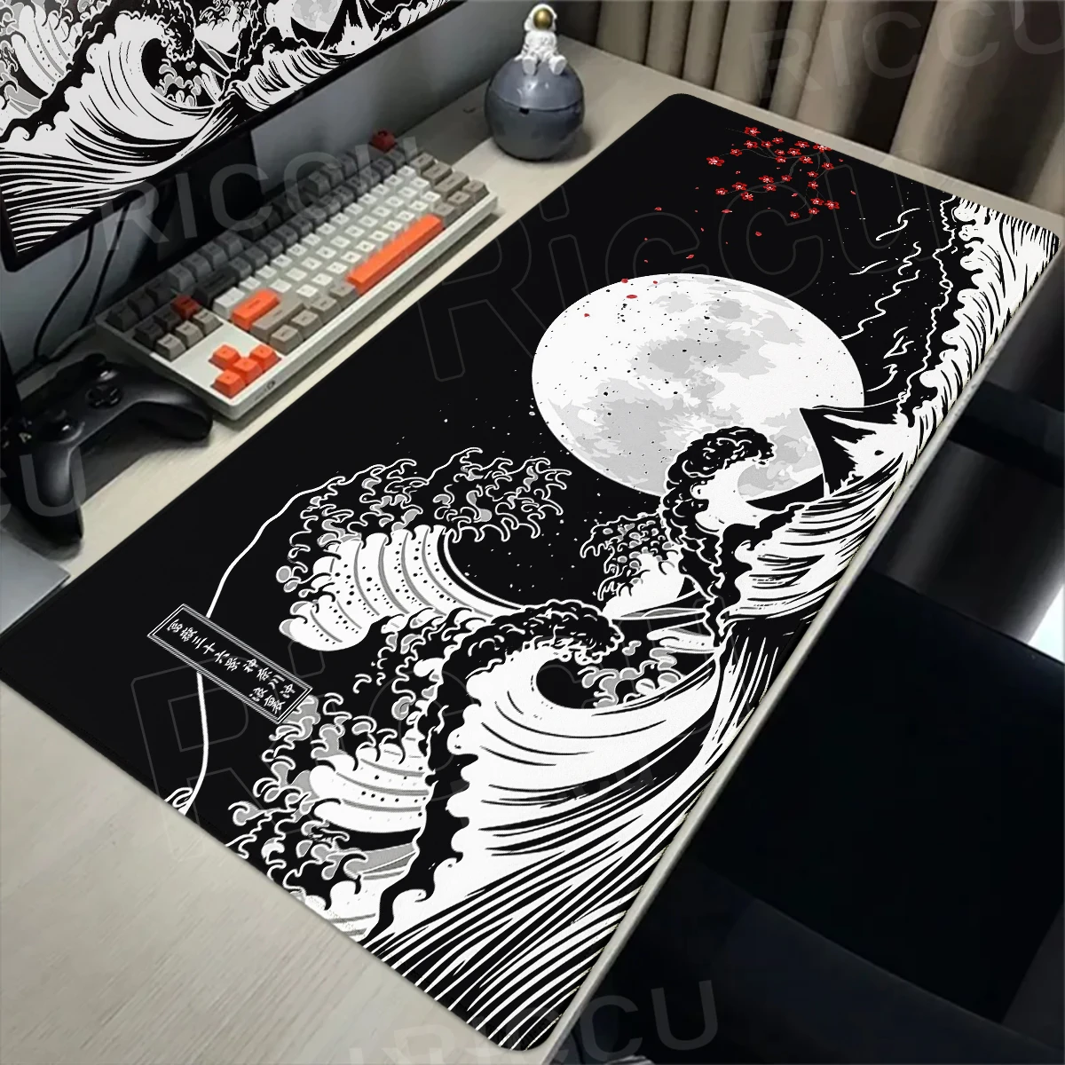 XXL Mauspad Japanische Große Welle von Kanagawa – Schreibtischunterlage minimalistisch