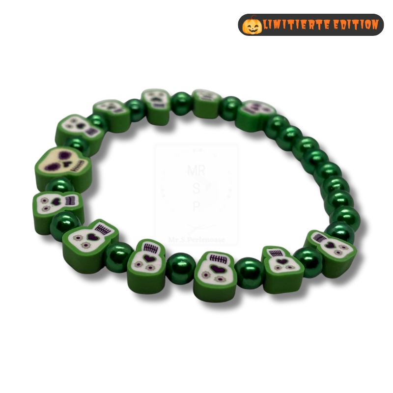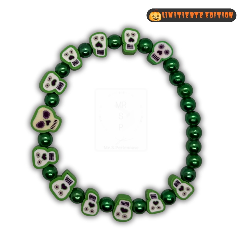 Halloween-Armband „Skull Parade“ – Grüne Edition mit Totenköpfen