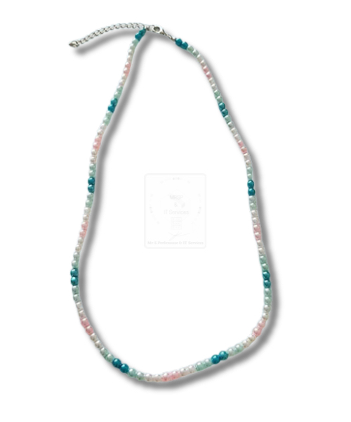 Verspielte Halskette in Türkis, Rosa und Weiß – handgemacht