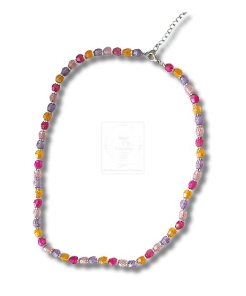 Farbenfrohe Halskette in Gelb, Rosa & Violett – handgemacht
