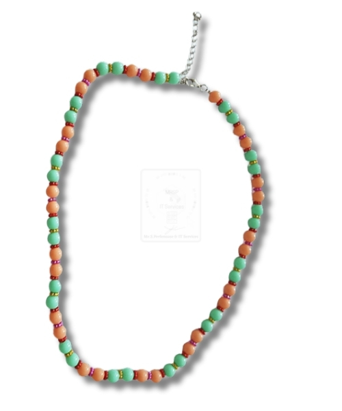 Bunte Halskette in Grün & Orange – handgemacht