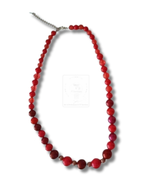 Elegante rote Halskette mit großen Perlen – handgefertigt