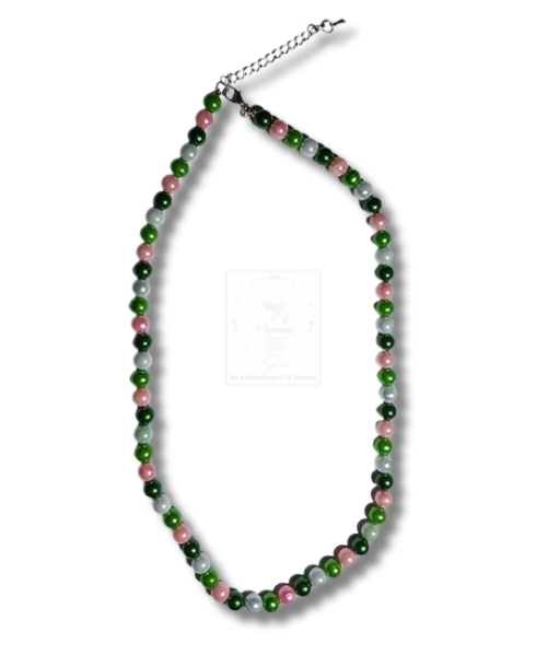 Handgemachte Halskette in Grün & Rosa – elegant & frisch