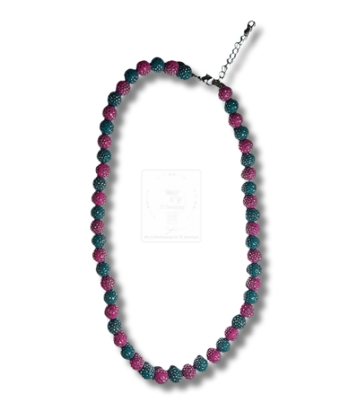 Glitzernde Halskette in Pink & Türkis – handgefertigt